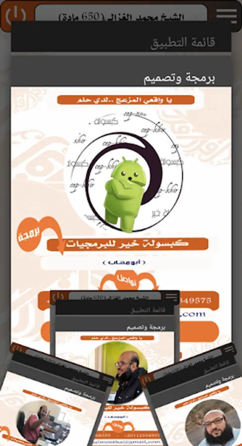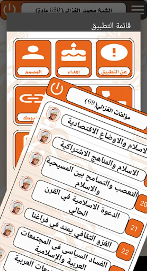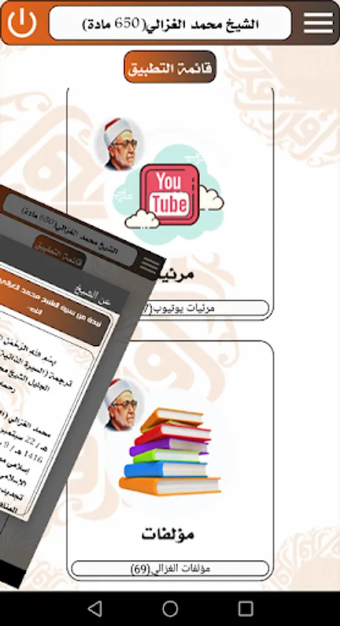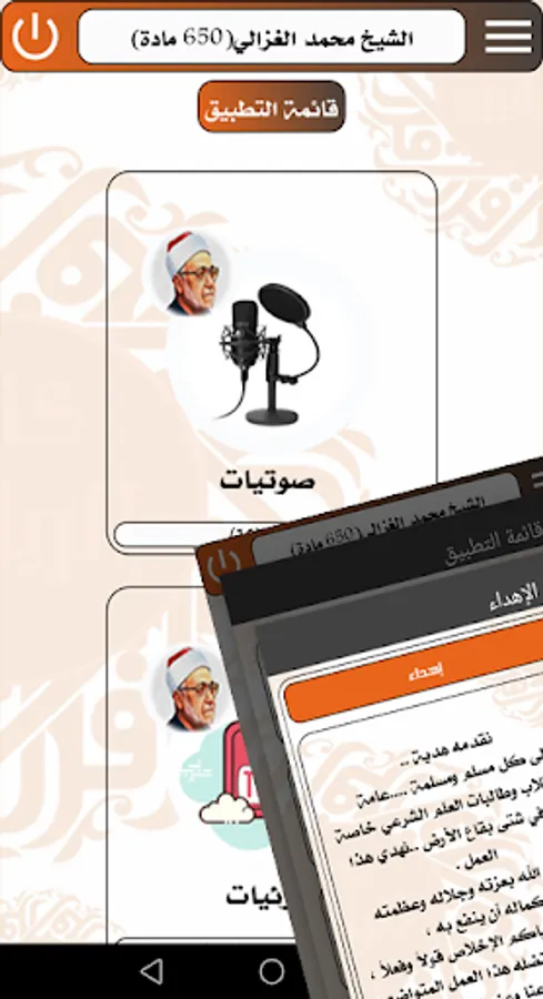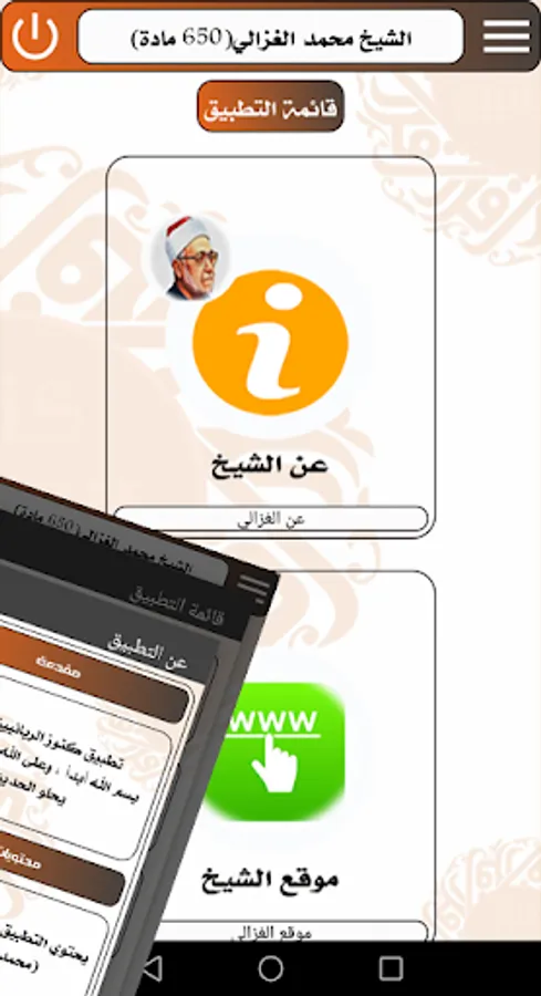 The application contains the scientific inheritance of Sheikh (Muhammad Al-Ghazali_ may God have mercy on him) with (650) articles