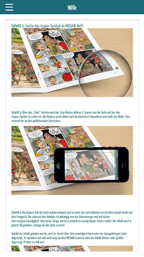 Diese Seiten könnt ihr mit unserer neuen kostenlosen App “MOSAIK Magic” scannen und dann passieren interessante Dinge auf