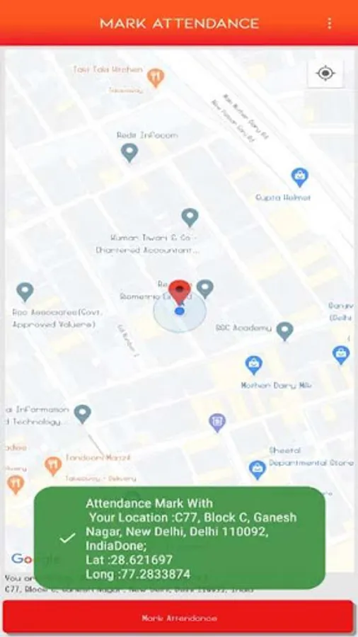 Online Attendance application. The employee is able to mark online attendance from outside and inside of the office.