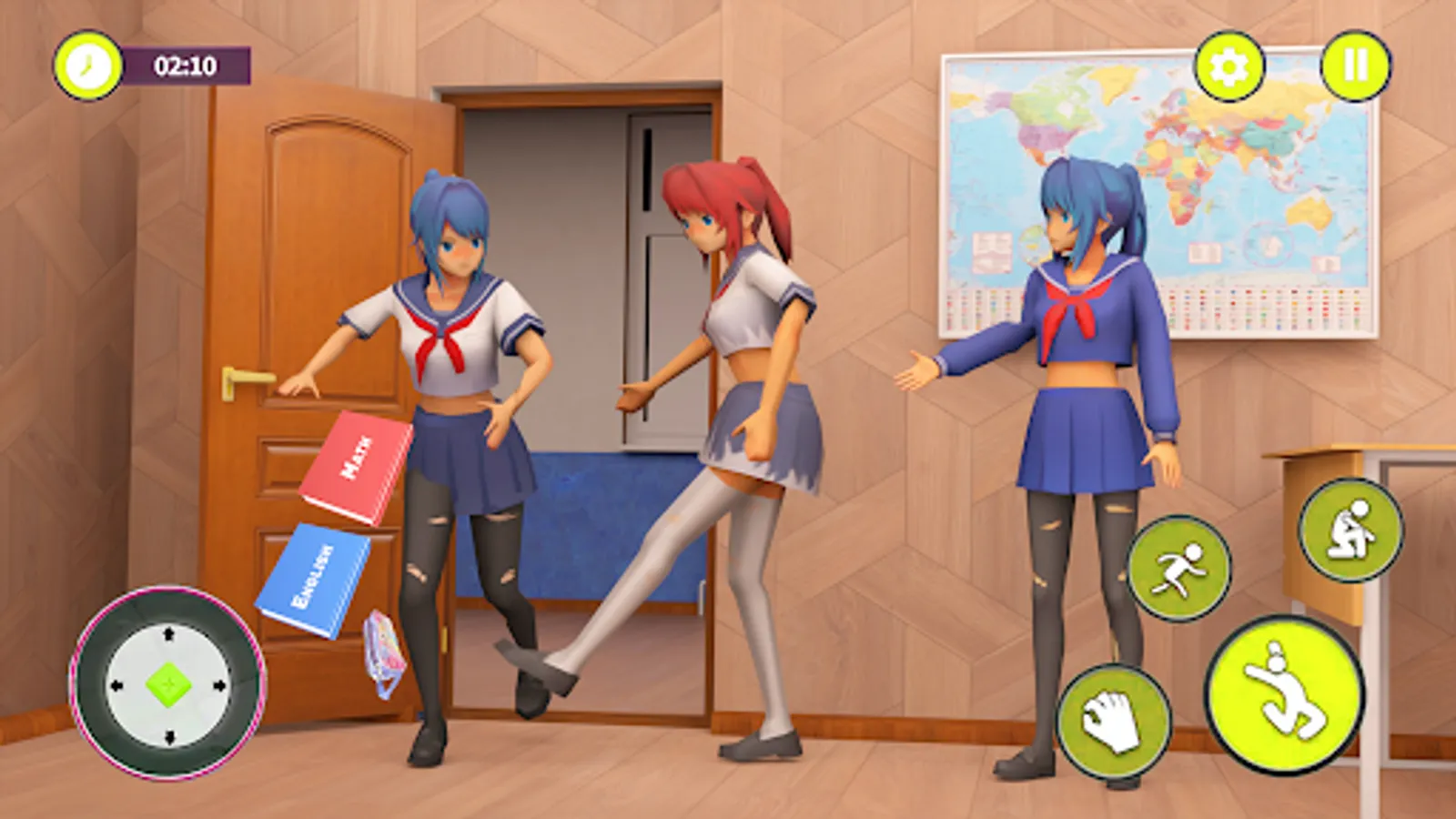 You will experience the anime school games festival which will be held in the school. The player can enjoy cool girl schoolmates games in the school girl simulator or anime high school 3D. In this Anime Game, you will experience different kinds of virtual high school girls life, you can choose to enjoy anime girl game in the classroom, or you can meet up with your high school life friends. Anime girl games will provide you the joy of experiencing high school life of a cool girl in a school girl simulator. The high school simulator is depends upon the scenario of girl life in a virtual high school.