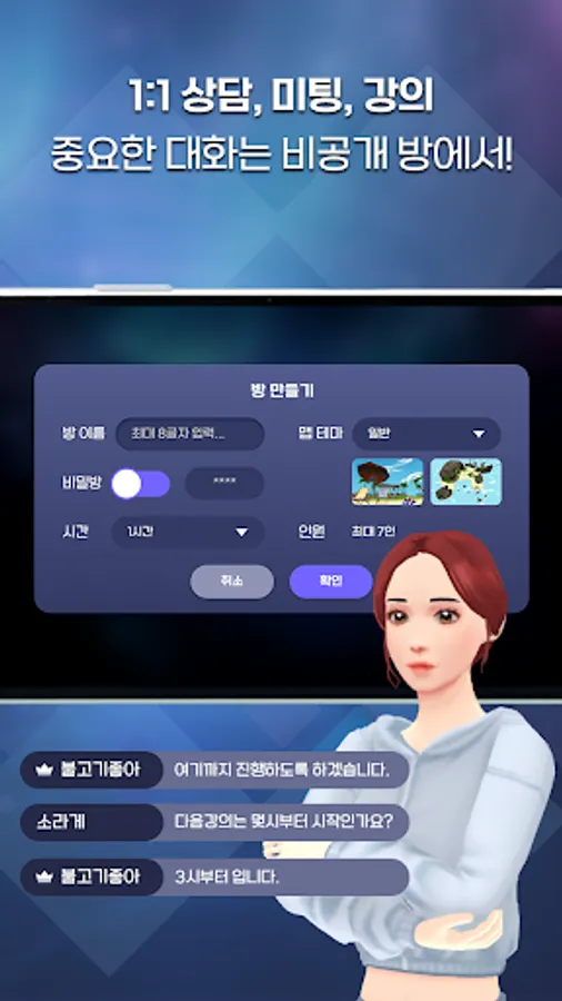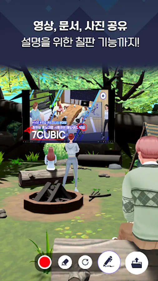 In 7CUBIC, you can talk face-to-face, share videos, documents, and photos, and take actions appropriate to your purpose.