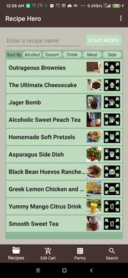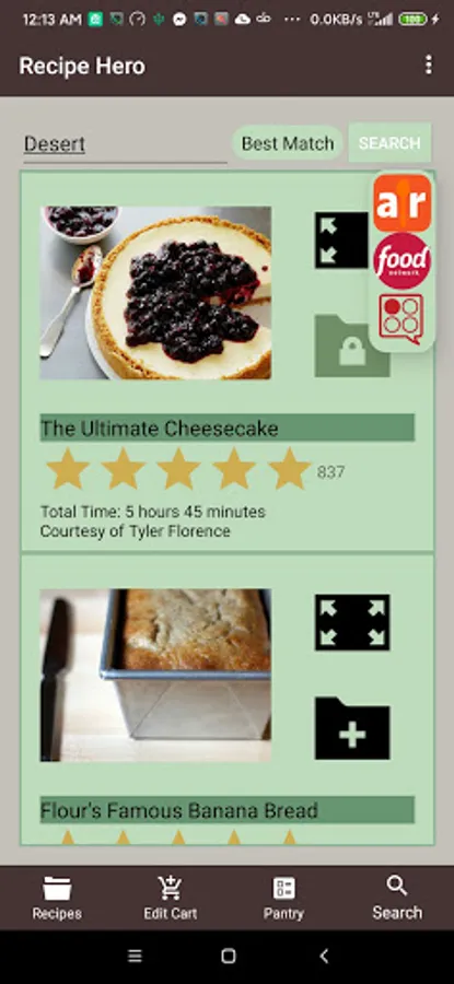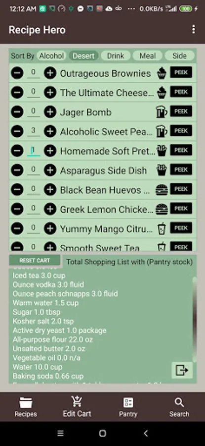 Stock your pantry to see what you can make or what you are close to making! Will also let your shopping cart know what you have on hard when you create a list.