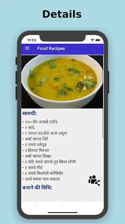 This Recipe apps the collection of best and various types of Indian Recipes In Hindi Language. Application describe many snacks,breakfast or nasta recipes in hindi language.