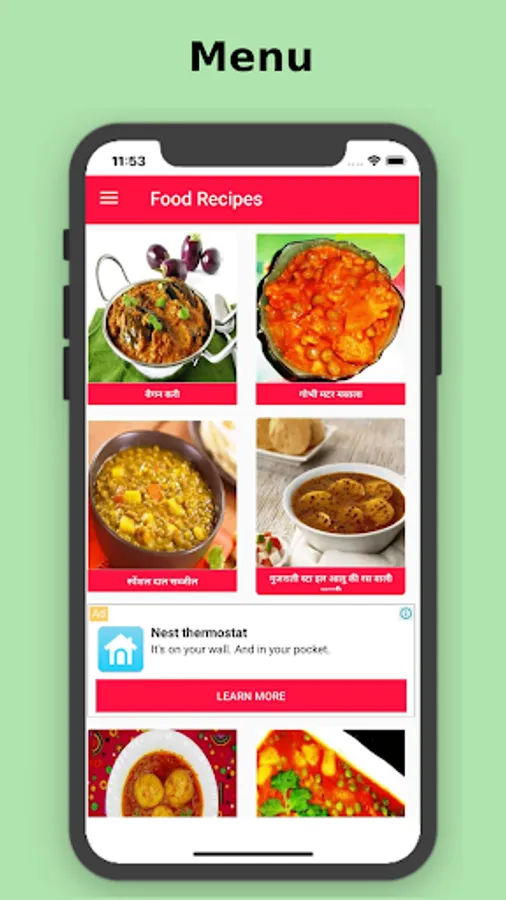 This Recipe apps the collection of best and various types of Indian Recipes In Hindi Language. Application describe many snacks,breakfast or nasta recipes in hindi language.