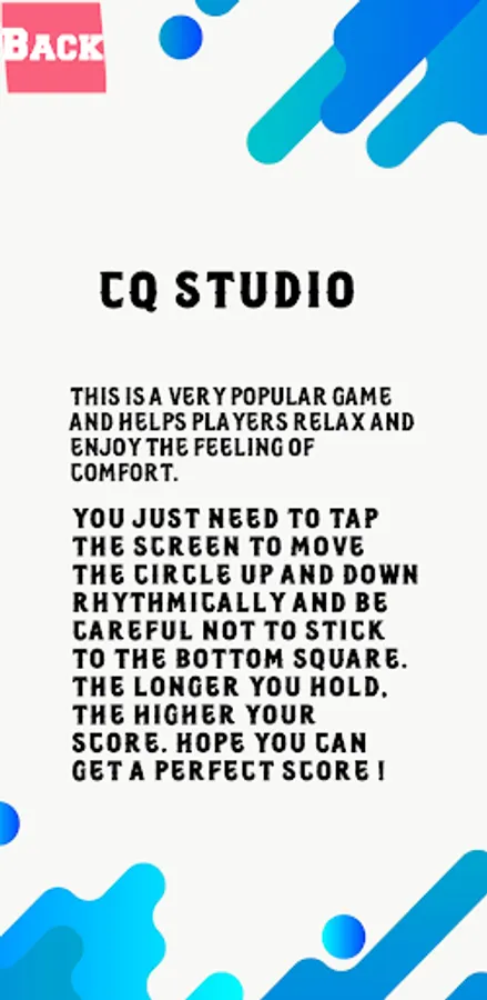 The gameplay is simple in this mobile game - tap the screen to move the circle up and down rhythmically, avoid getting stuck to the bottom square. The longer you hold, the higher your score, so it's all about finding the right rhythm and timing. With each level, the game becomes increasingly challenging, making it harder to score higher. However, if you do manage to get a perfect score, the satisfaction is immense. Whether you're looking for a quick, fun game to play during a break or something to pass the time on a long commute, this game is a great choice. With simple graphics and intuitive controls, it's easy to pick up and play, yet it offers enough of a challenge to keep you coming back for more.