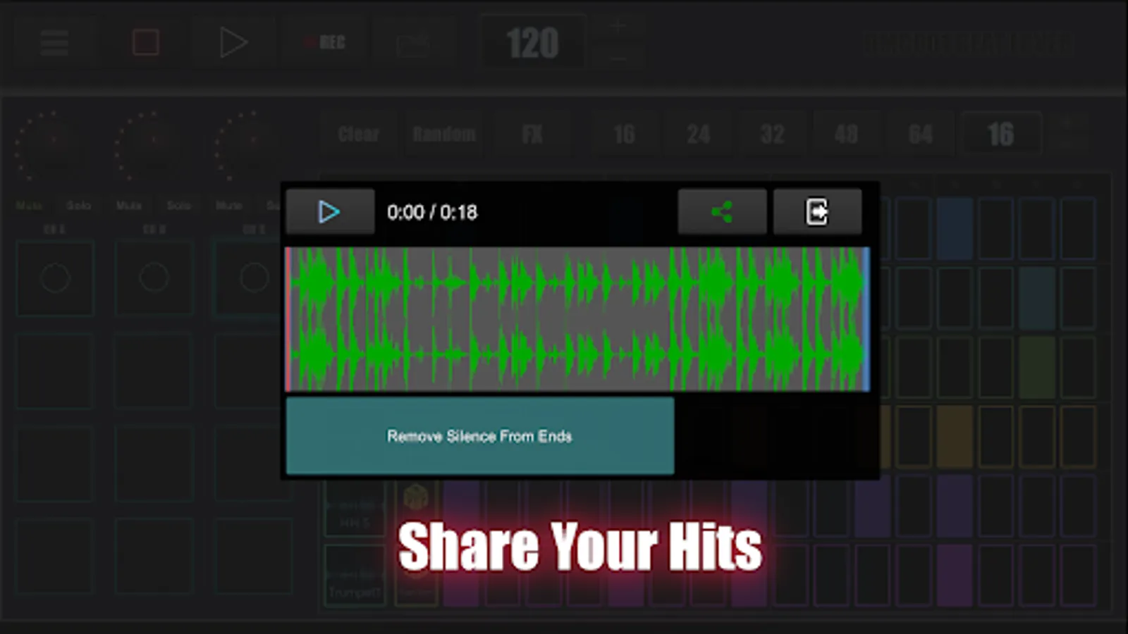 Be a music producer: Record your tracks and mix, you got 3 channels with 4 variation of music sequence of 6 instruments like; kick, snare, high hat, percussion, FX and Crash or just jam live for/with your friends.