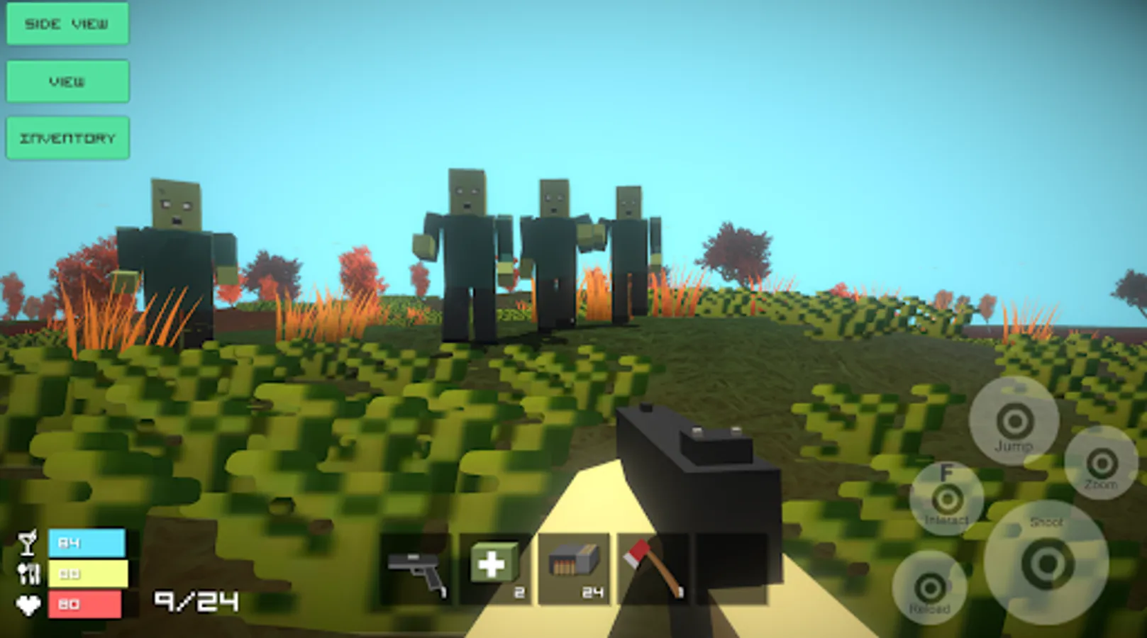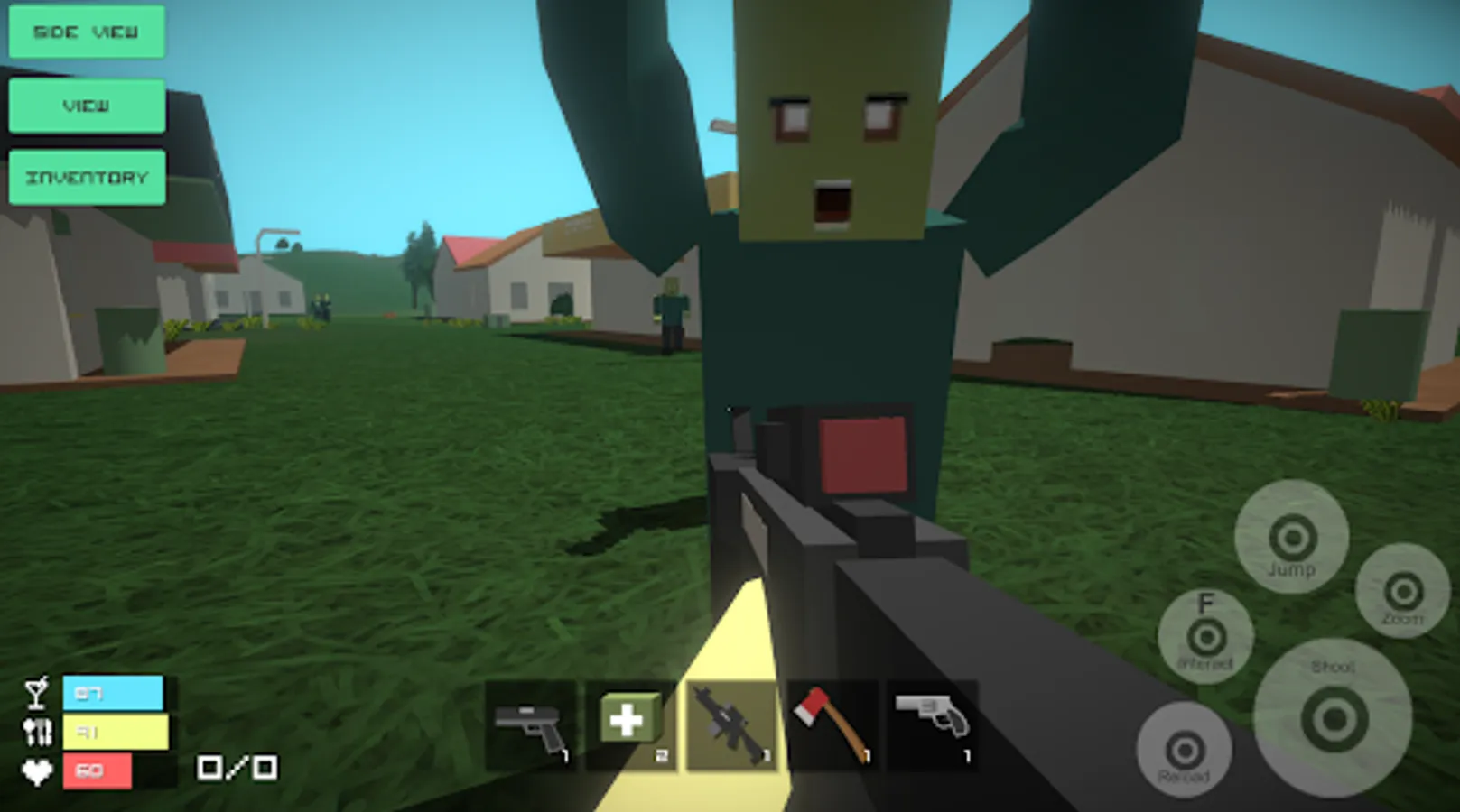 ▶ Excellent 3d voxel cube graphics The open world in Zombie Survival Shooter is designed to the smallest detail, explore the picturesque forests, farms and villages infected with the zombie virus.