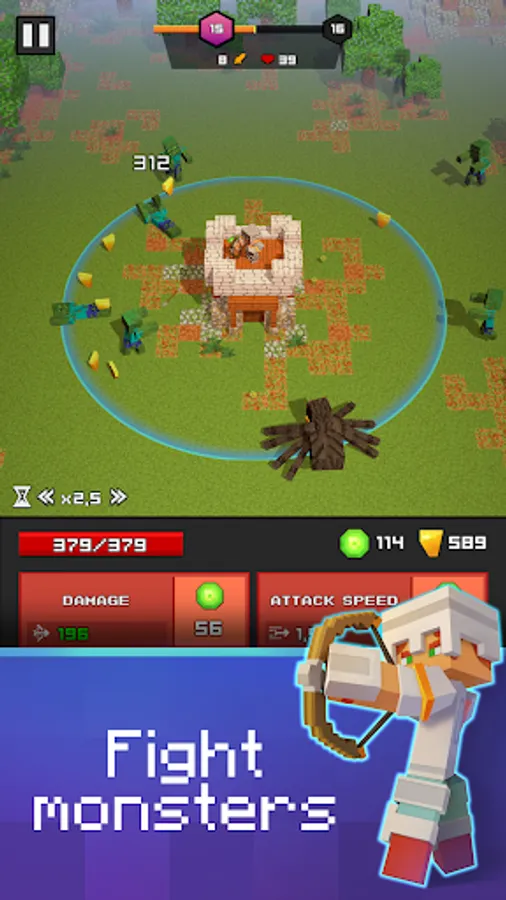 "Ms archer: idle tower defense"is a fascinating game in the familiar "Craft" style with simple gameplay, which will captivate you for many hours! You have to protect your tower from a lot of enemies, including zombies, spiders, monsters and others. The game features staggered difficulty levels, each with new waves of enemies and increasing difficulty.
