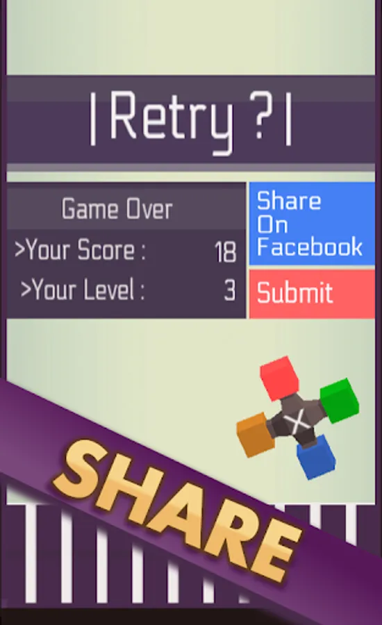 The principle of the game is turning right or turning left your four colored sides to match the terget color, it switch every single touch, think of the next step to get the next terget color.