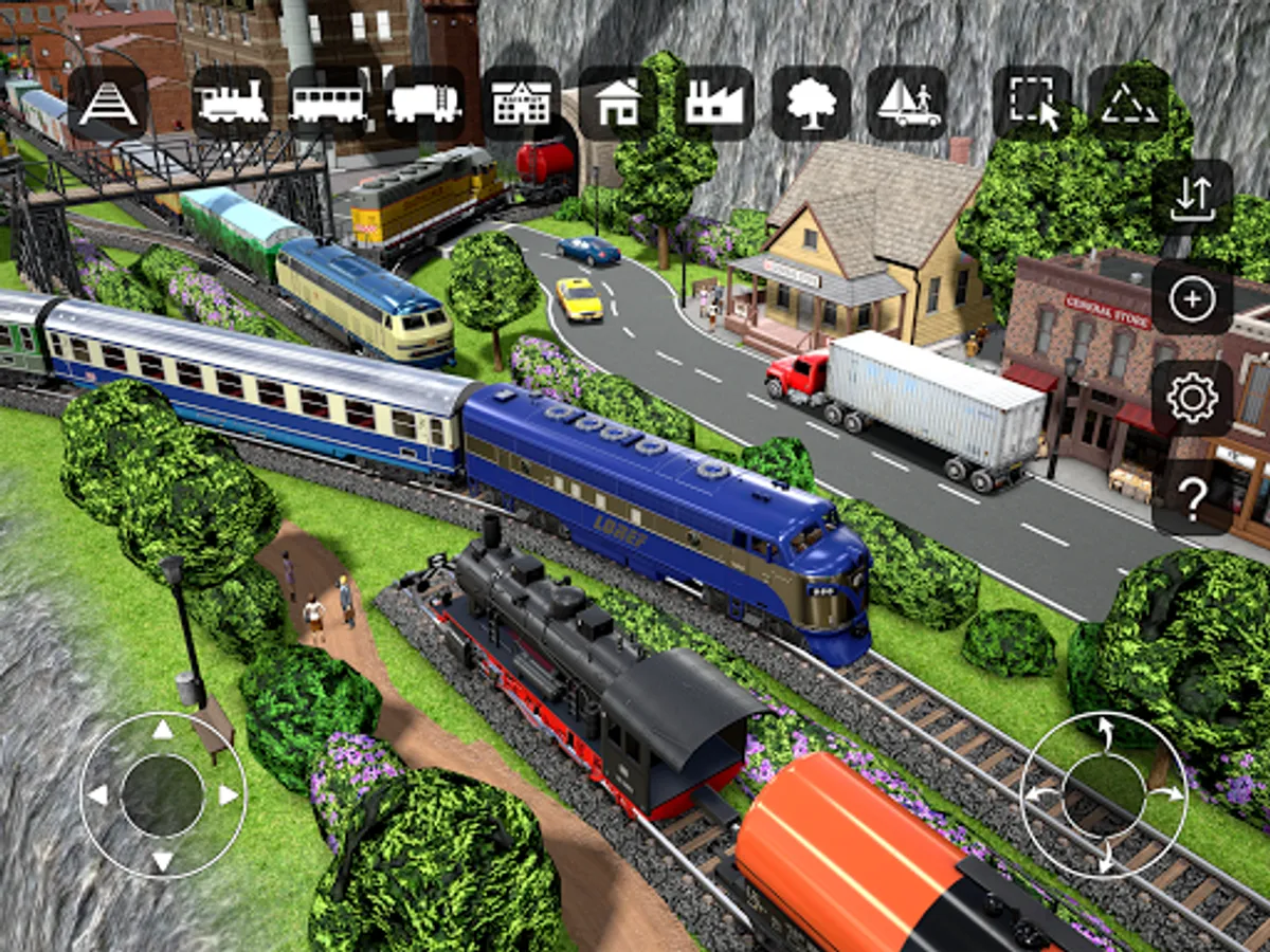 You can start with different empty landscapes and populate them with beautiful 3D models of engines, wagons, buildings, plants etc. All the little models have lot of details just like real life railway models.