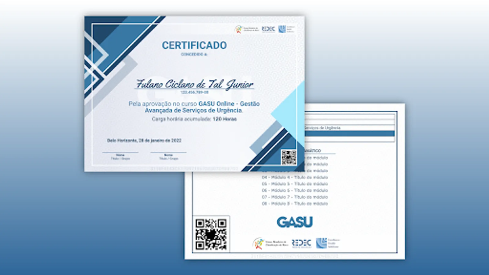 Use this application to access all your certificates from courses taken with Redec, such as the Manchester Protocol Risk Classification Course (all modalities, distance learning, In-person and live / zoom), GASU online and others.