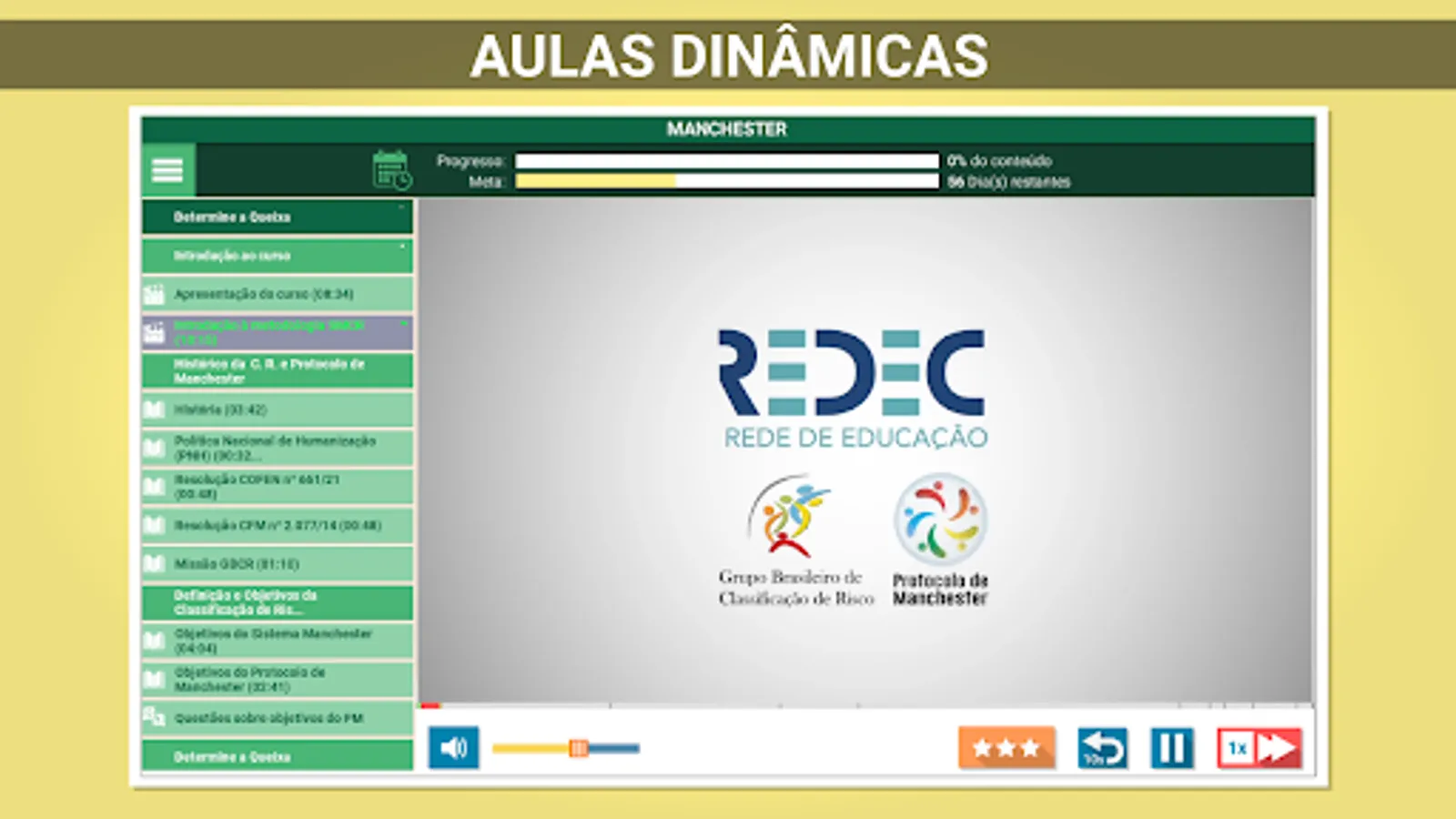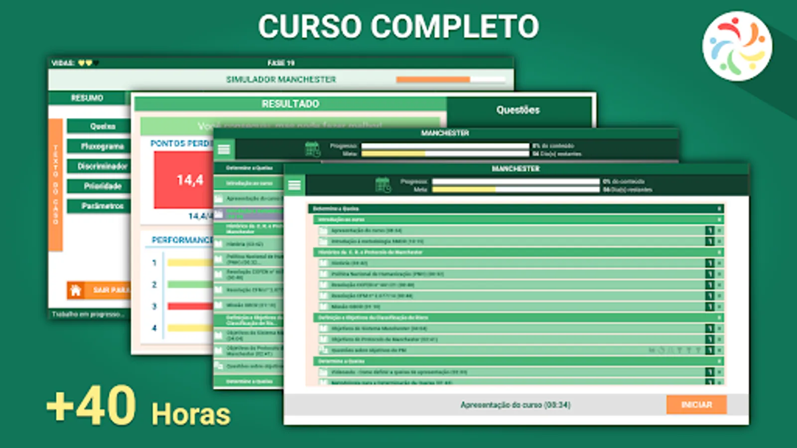 Manchester Triage Group Protocol (Manchester Triage Group Protocol) Course is an online course, 100% virtual, self-explanatory, designed to train health professionals, doctors and nurses in Manchester Risk Classification System. Valid for selection processes and selection notices.