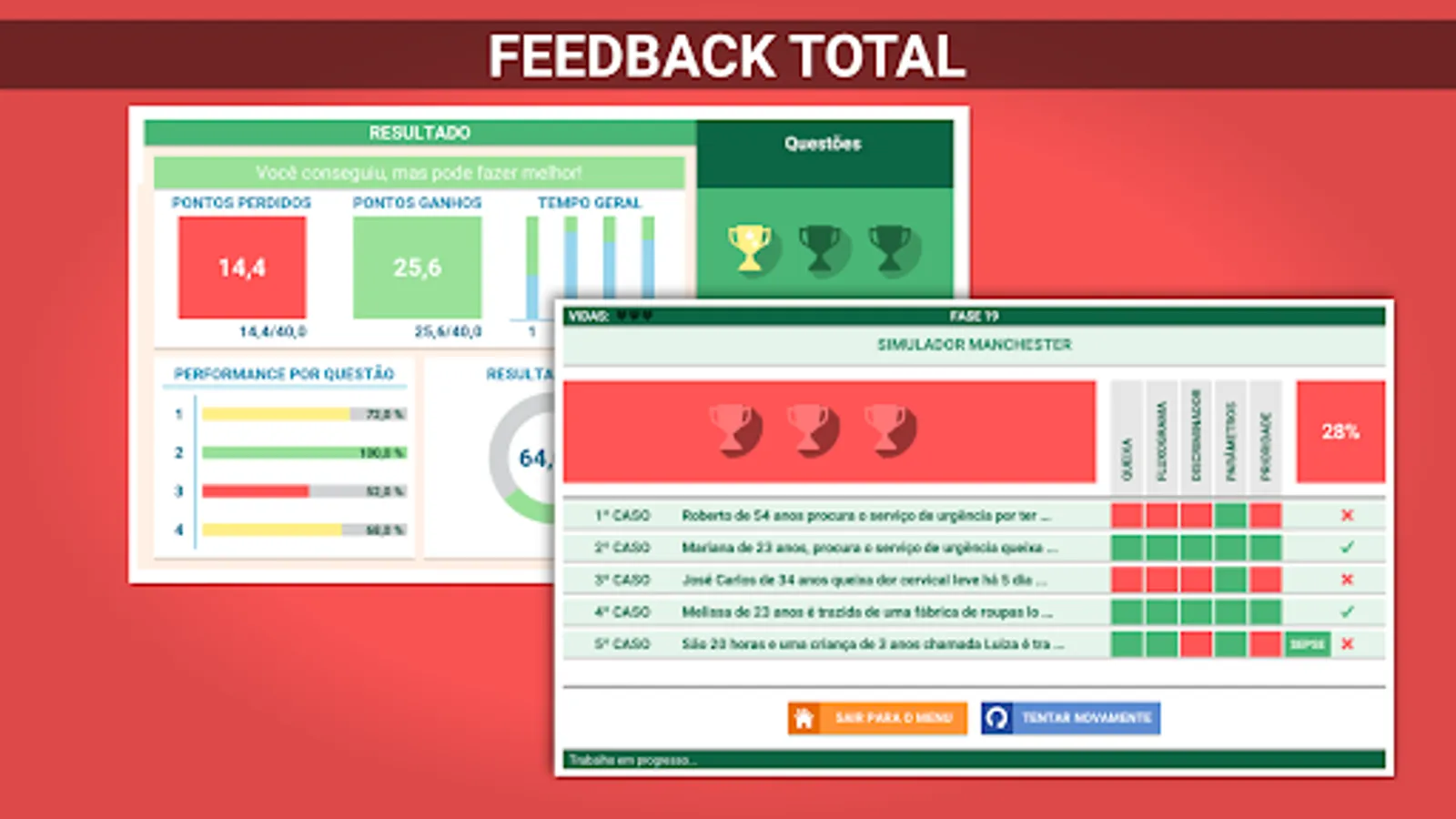 In a playful and interactive way, the course uses gamification concepts and is divided into Modules. As the student correctly solves the clinical cases, he earns points and advances in the game. You will have access to the course content and will be able to study and carry out the activities wherever and whenever you want, 24 hours a day, 7 days a week. 40 hours workload. Course registration required.