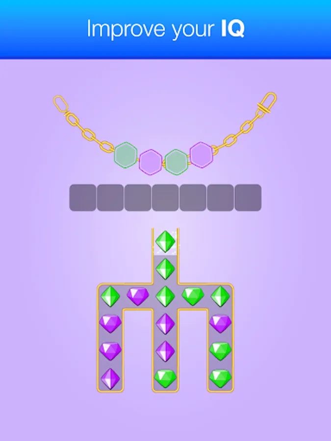 Sharpen your brain in this Gem matching puzzle game. Tap Gems that aren't trapped to unblock them. Match 3 Gems to create a bigger Gem. Don't let your tray run out of space.