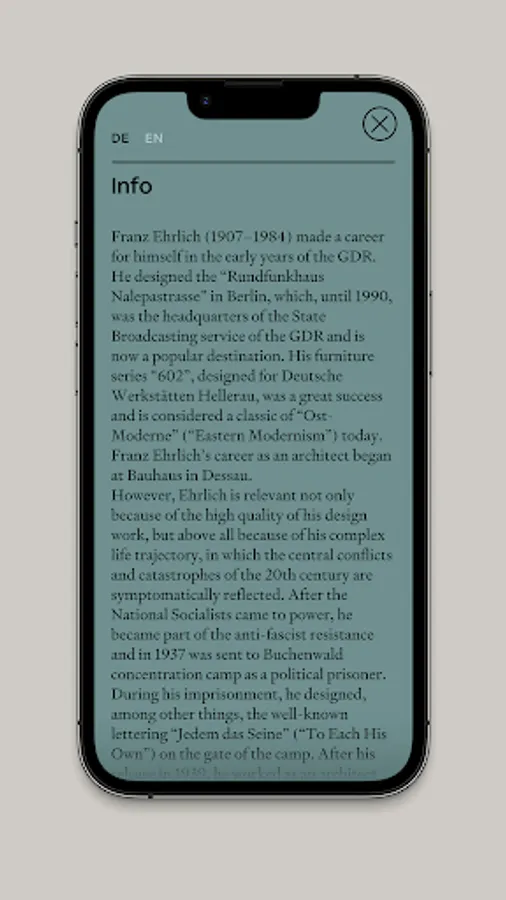 Learn more about his story in the audio walk “The Bauhausler Franz Ehrlich in Buchenwald”. Download the app and take a tour through the Buchenwald Memorial in Weimar.