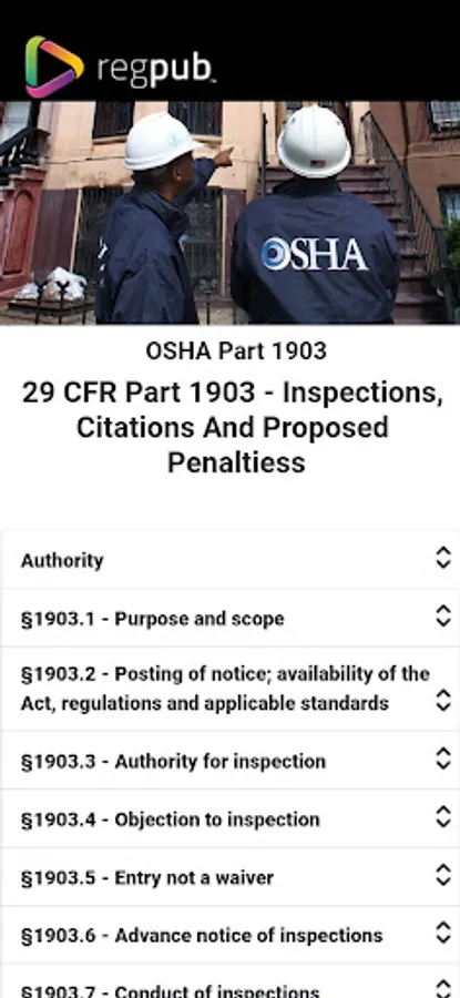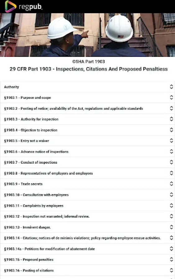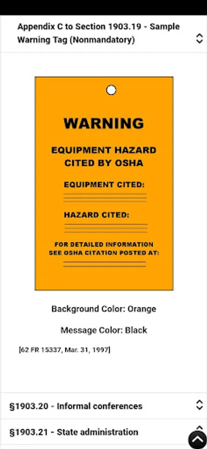 Please install our OSHA Standards App for up-to-date searchable regulations and interpretations: