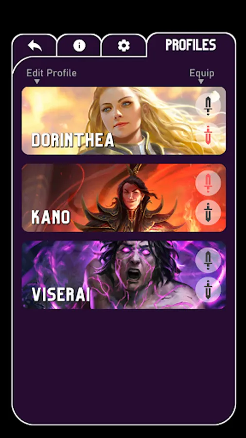 Customize profiles for each of your decks: Set different starting life totals, equipment trackers, and hero splash art - then select the ones you want to play with!
