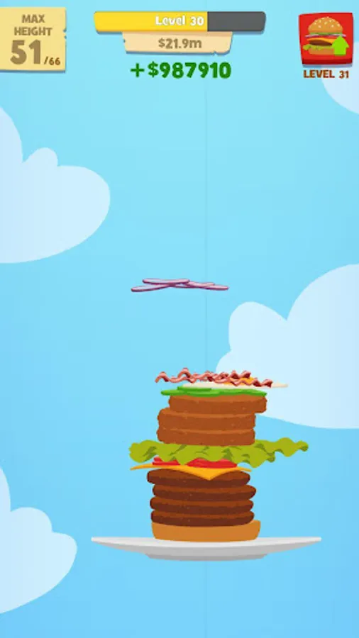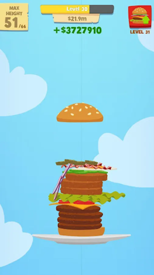 - Cook burgers, gain money, unlock new ingredients.