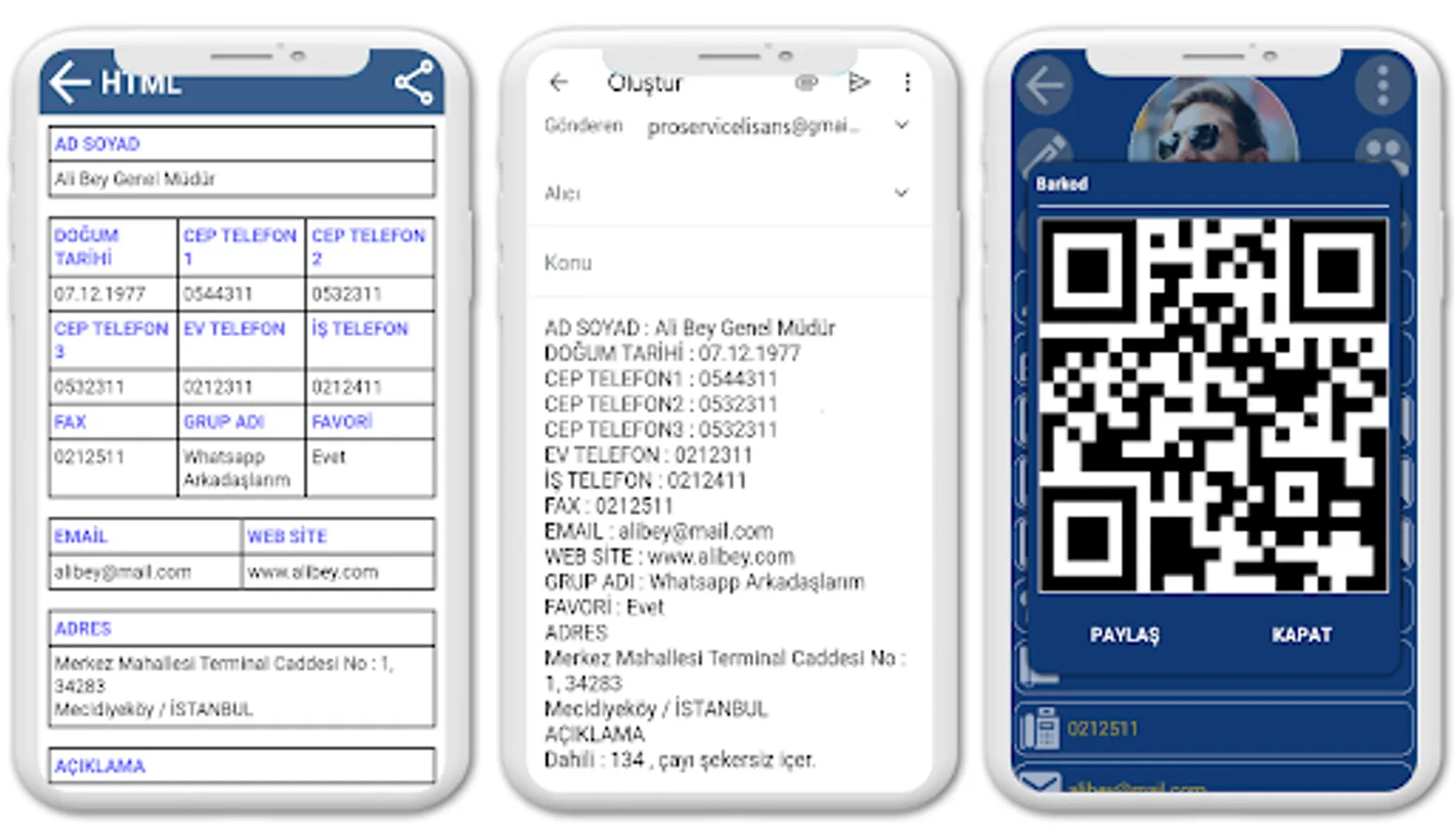 * You can share the name, surname and mobile phone1 information of the person you are viewing by creating a qr code.