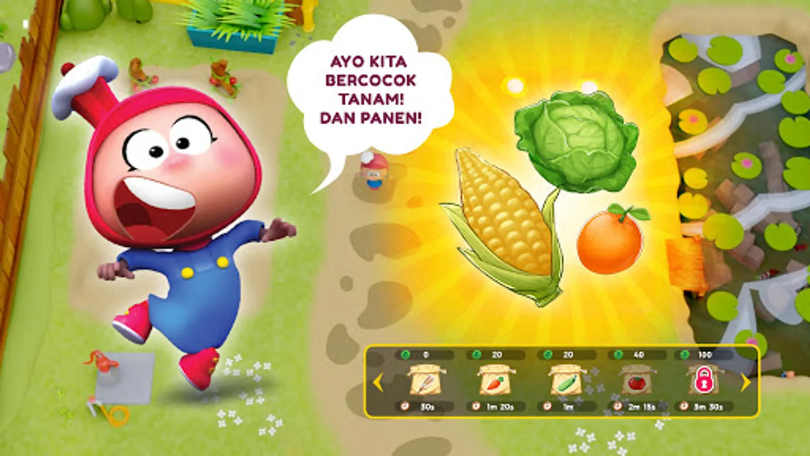 - Gardening Mini Game, learn to grow to grow fruit and vegetables to use in Mini Cooking Games.
