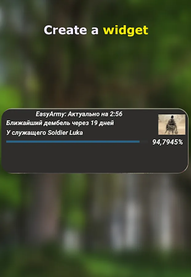 The application is suitable both for employees to track the service life of their and their comrades, and for those who are waiting for the defender of the Motherland on the other side of the fence :)