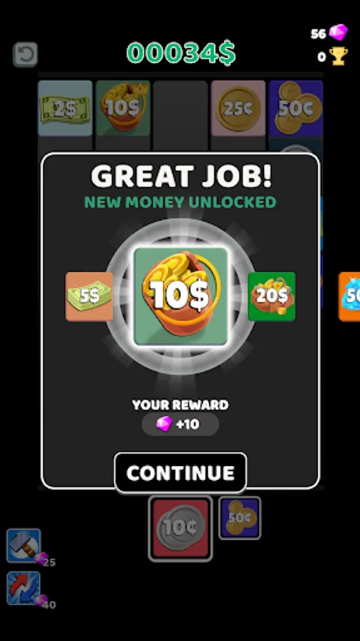 The objective is to drag and shoot the money blocks to progressively unlock new blocks. The challenge expands as you move on. You can go as far as infinity!