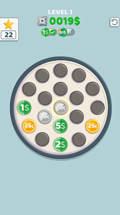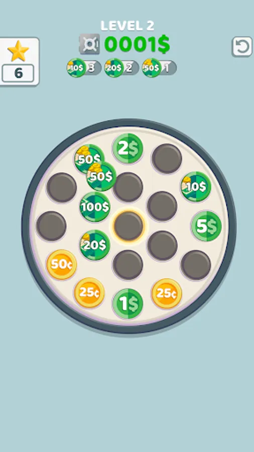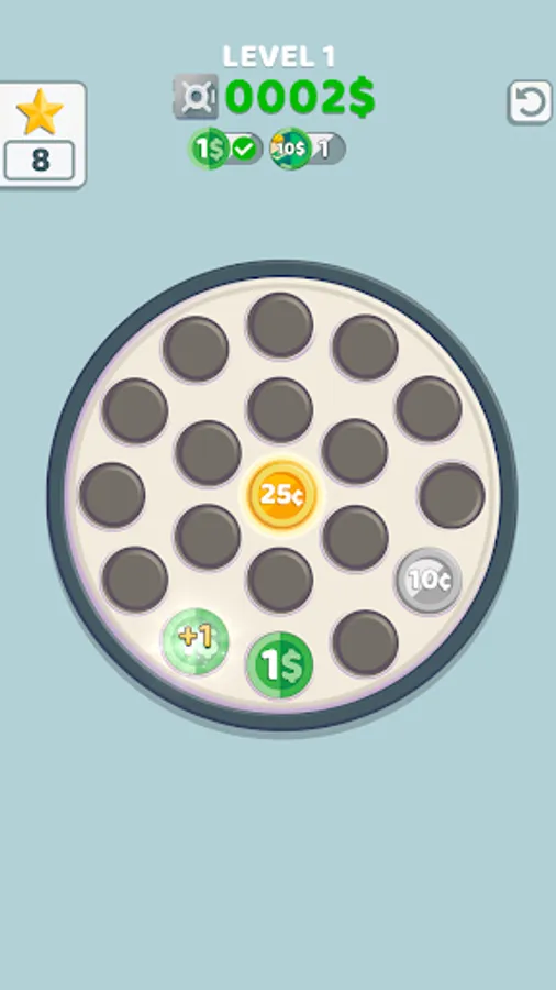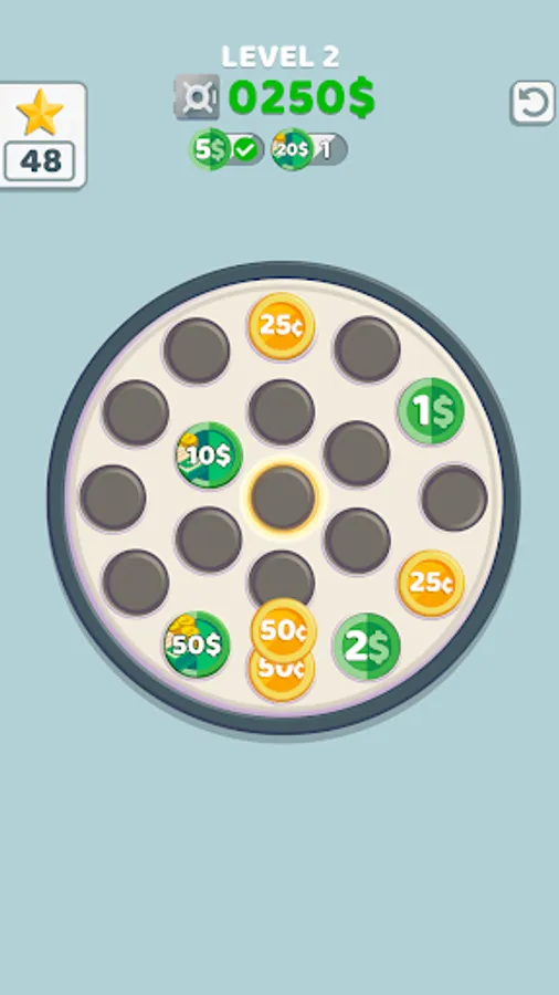 Tap to place the coins in a desired slot. When coins with the same amount touch, they merge into one.