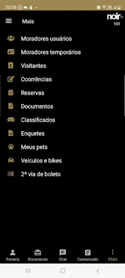 Noir Plus is a facilities application for condominium residents that takes control of orders, visitors, announcements, occurrences, chat with concierge, condominium documents, internal classifieds and much more!