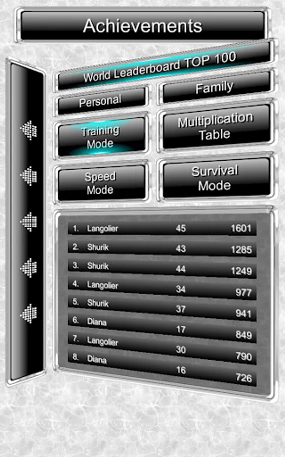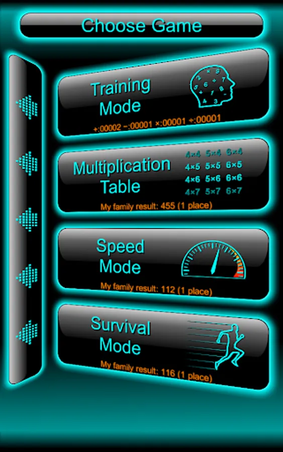 All family members can play Family Math using each their profile. And Family Math will save the results of each player in the Achievements section. So you can set up family tournament.