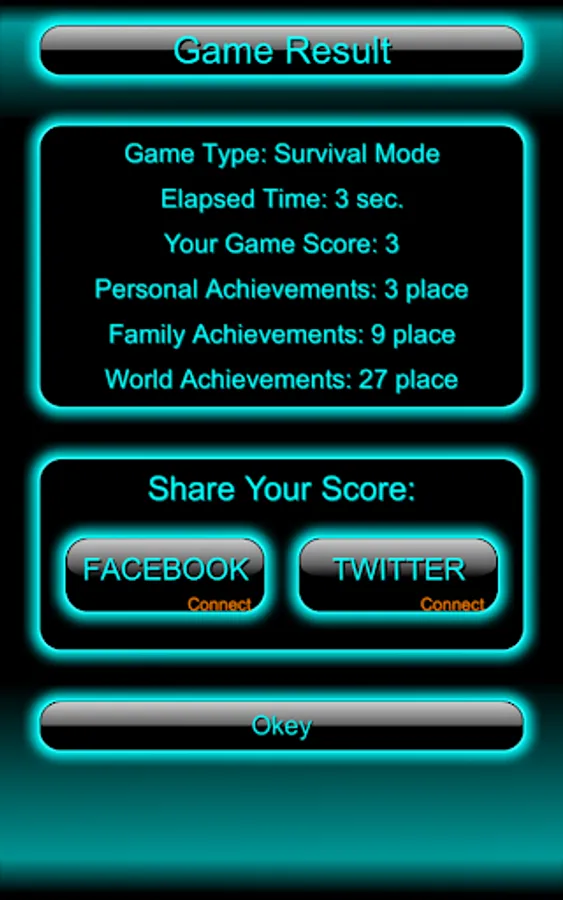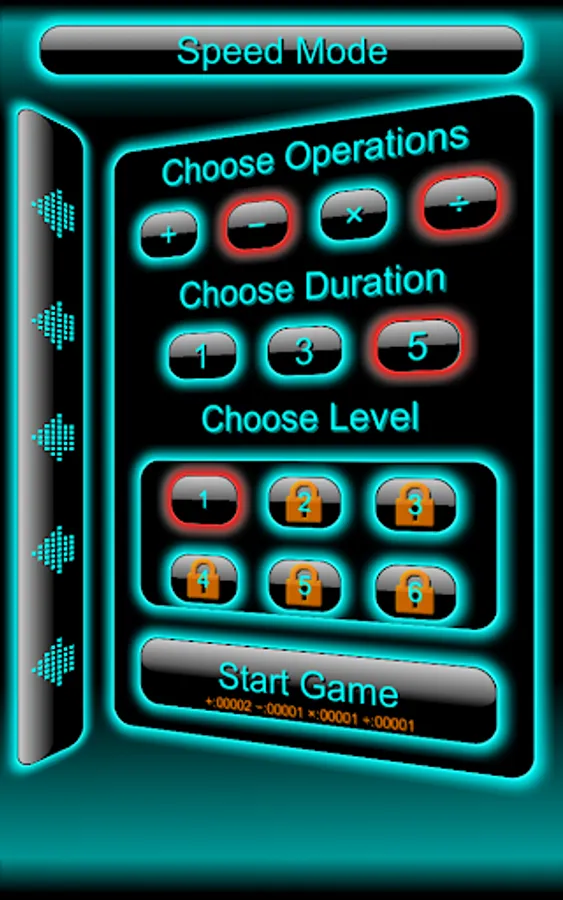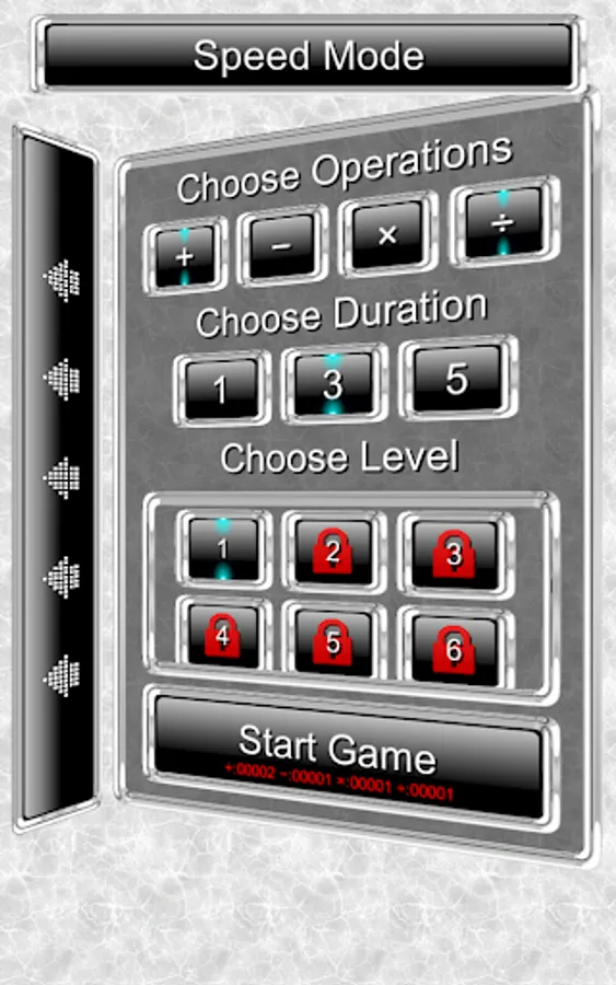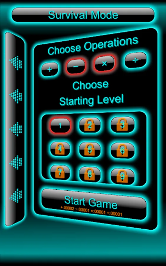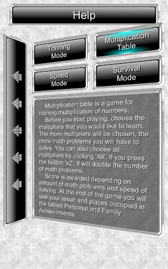 Family Math has four game modes: Training Mode, Multiplication Table, Speed Mode and Survival Mode. In each mode, you can select level and which arithmetical operations you want to train. Playing in Training Mode you will unlock new game levels. If maximum available level is passed without any errors, you will unlock the next level. By opening the levels in Training Mode, you can play with the same levels in other modes of Family Math: Speed Mode and Survival Mode. Speed Mode is a game in which you can see how quickly you solve math problems. Survival Mode is a game mode in which you can play forever, until you make the first mistake. Multiplication Table is a game for training multiplication of numbers, especially for children in school. In this mode, you can select multipliers you need to train.