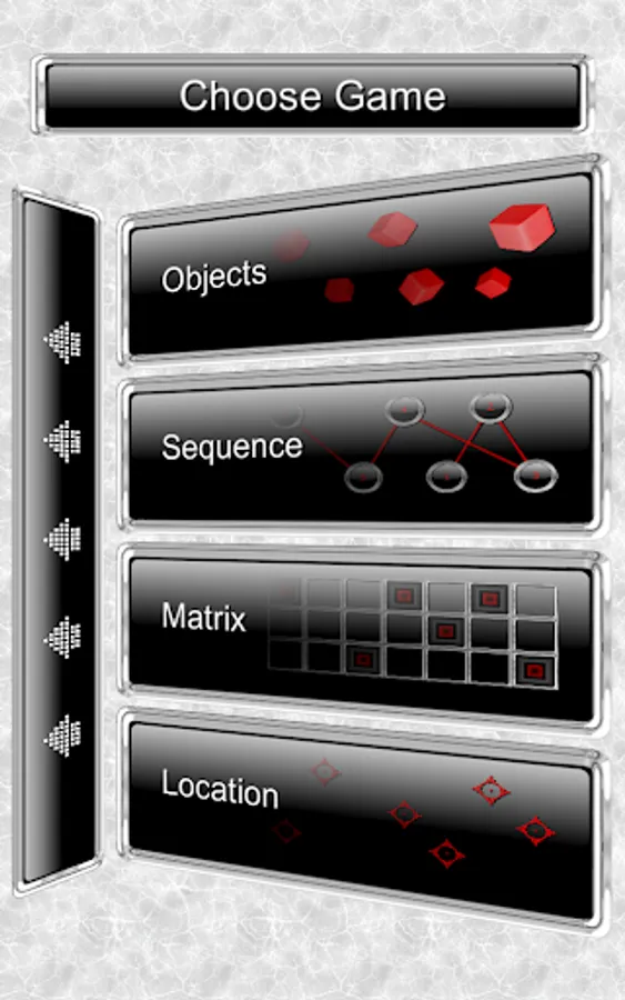 Four memory games in one (Objects, Sequence, Matrix, Location)