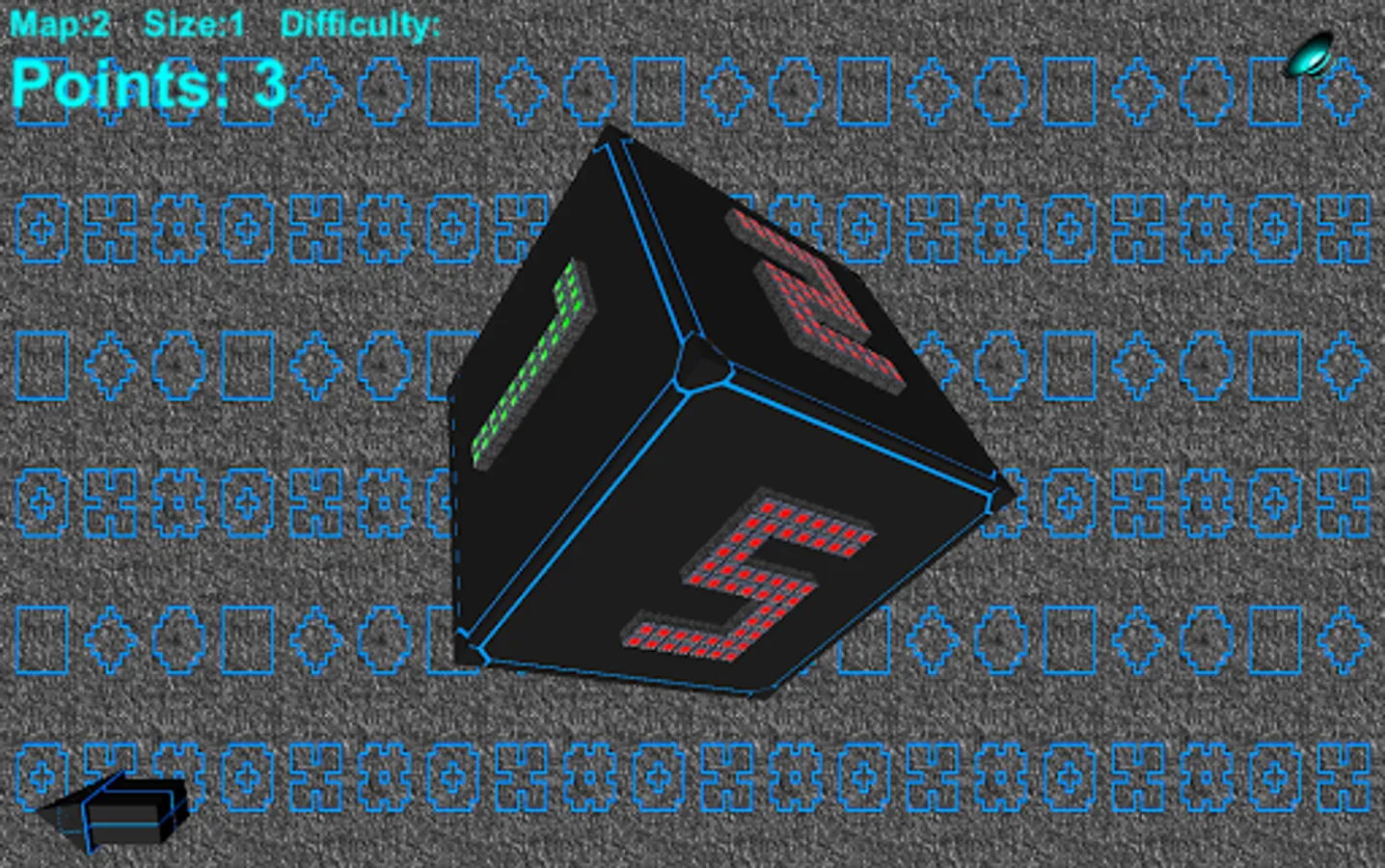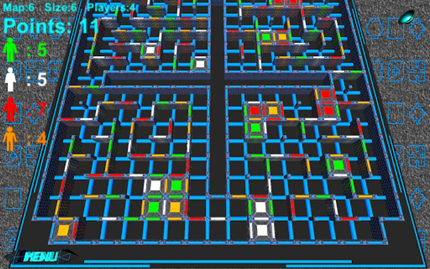 Game Labyrinth Battle has 6 different maps. For each map you can choose 1-6 size. For each size you can choose 1-6 difficulty level (for single-player). In multi-player mode you can choose 2-5 players.