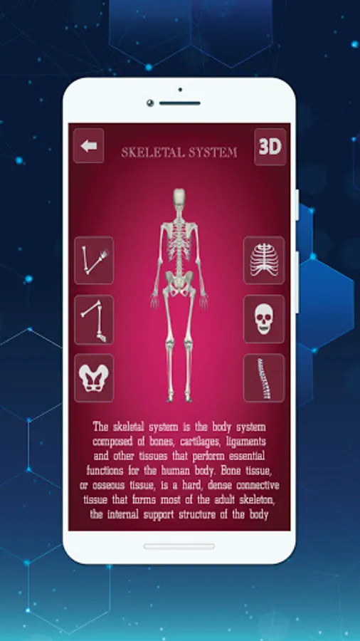 • This app allows the users to elaborate on all the feme skeleton anatomy in a 3D view.