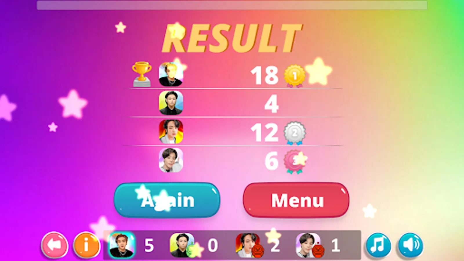 As in our previous memory games, there are three game modes – “standard game”, in which you have to collect identical cards of BTS, “challenge” aiming at memorizing as many card pairs as possible in the allotted time and “competition”, in which the winner is chosen after several game rounds. Each game mode is supplied with a tutorial.