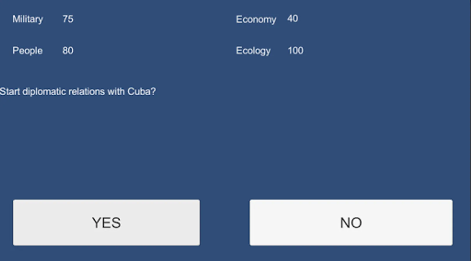 You've been chosen to lead the United States of America. Make the right choices and keep your aproval rate over 0.