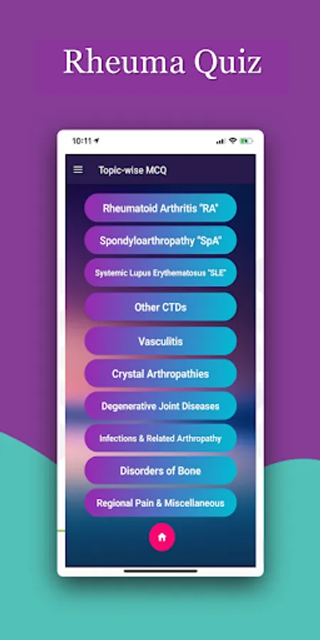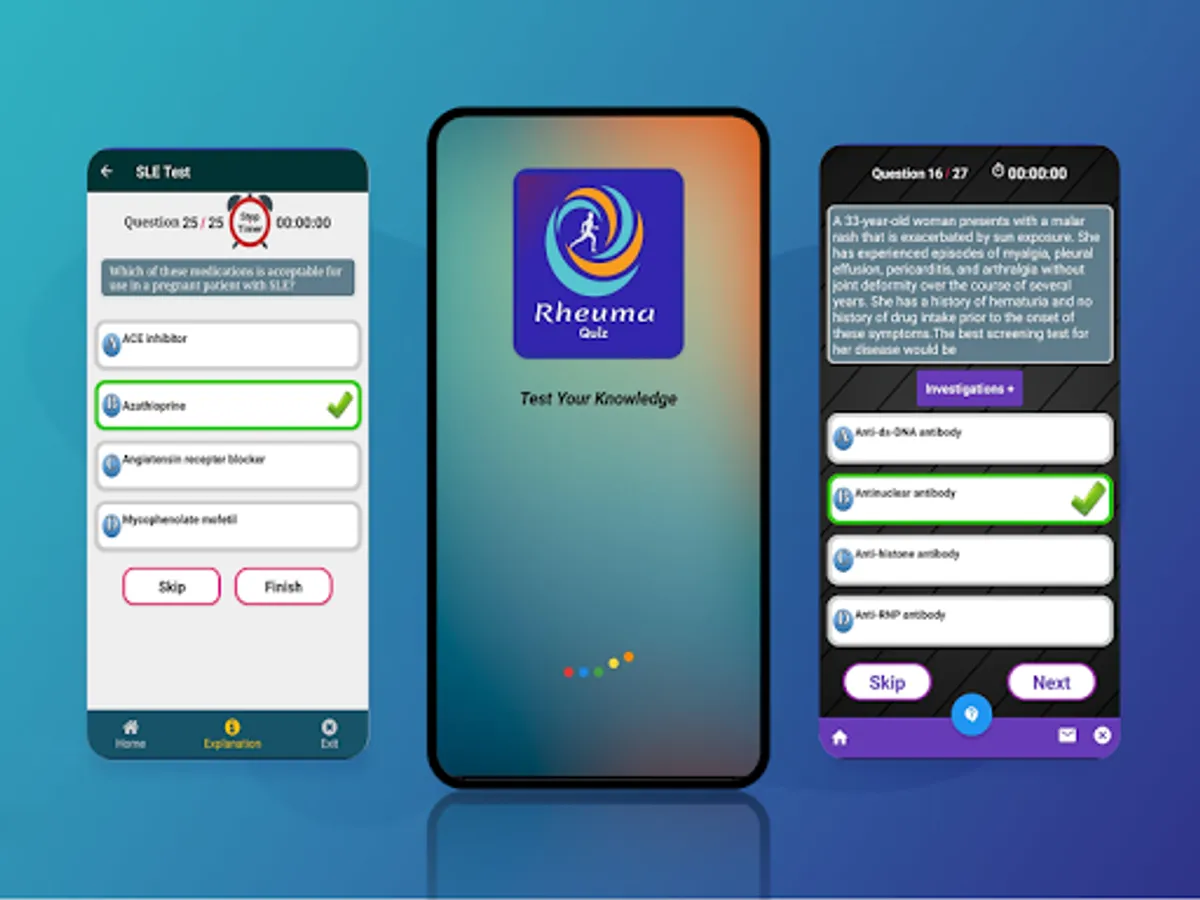 Test your medical knowledge with educational Rheuma Quiz app having more than 2500+ MCQs & 500+ Cases for your Success of Rheumatology Exam (MRCP, Prometric, MOH, DHA....)
