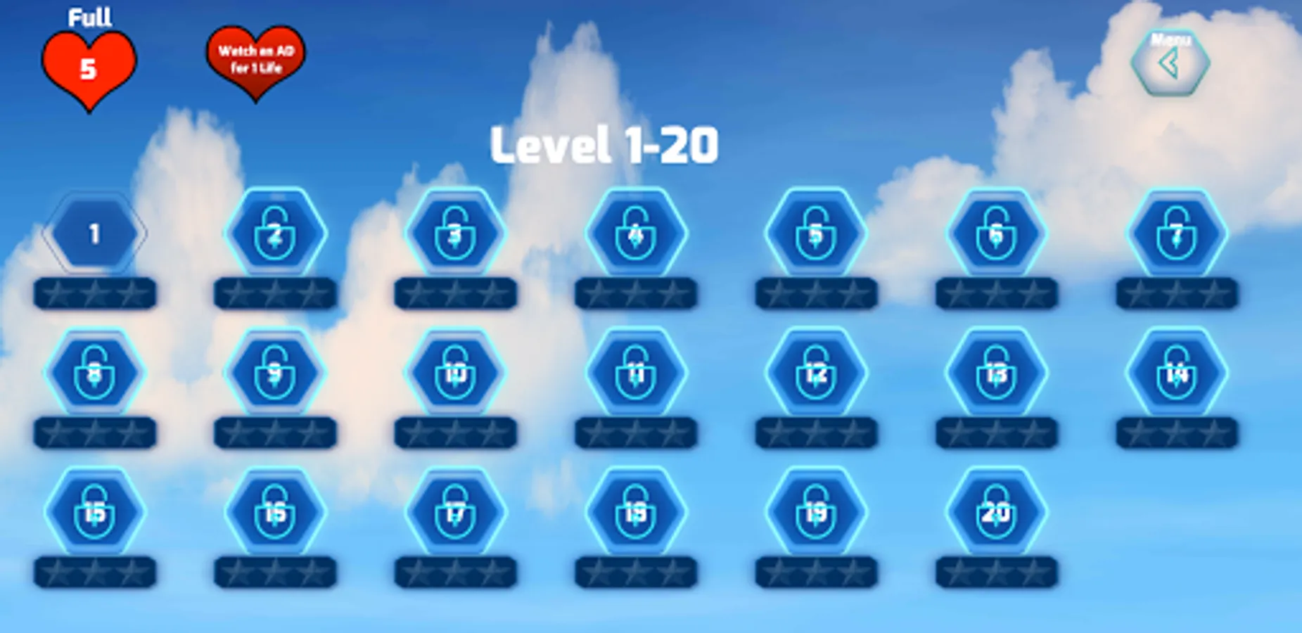 Flappy Smiley consists of 3 endless modes, each with 3 levels of difficulty and 20 levels