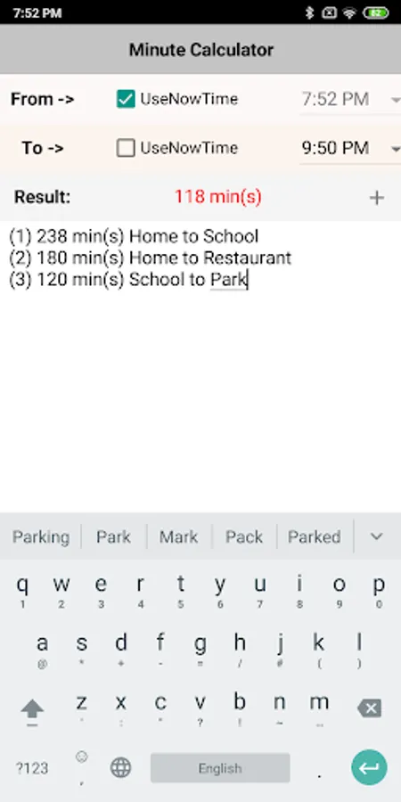 Using TimeTrack is easy: simply select the start and end times (From and To), and the app will display the difference in minutes between the two times. You can then press the "+" button to record the note below, and click on the notepad window to add a text description after the minute mark.