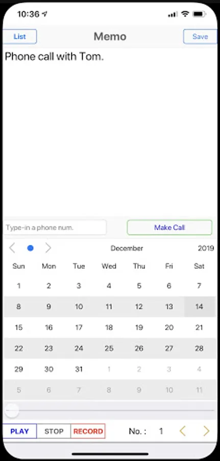 You can record daily telephone memos and view date count with just a few taps. Plus, you can write text record for phone call content and play memo voice whenever you need to.