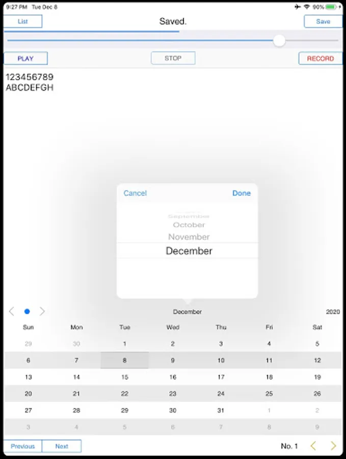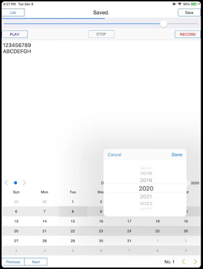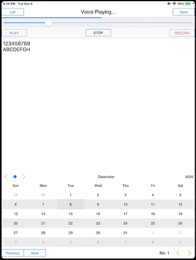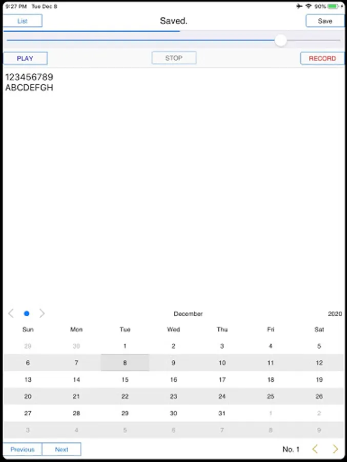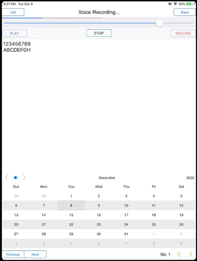 Our app is user-friendly and straightforward. To get started, select the date (default: Today) and press the button in the lower right corner to assign a record number. You can type text content in the text window and click the [Save] button to save the text content. You can also click the [RECORD] button to start recording voice and the [PLAY] button to play it back.