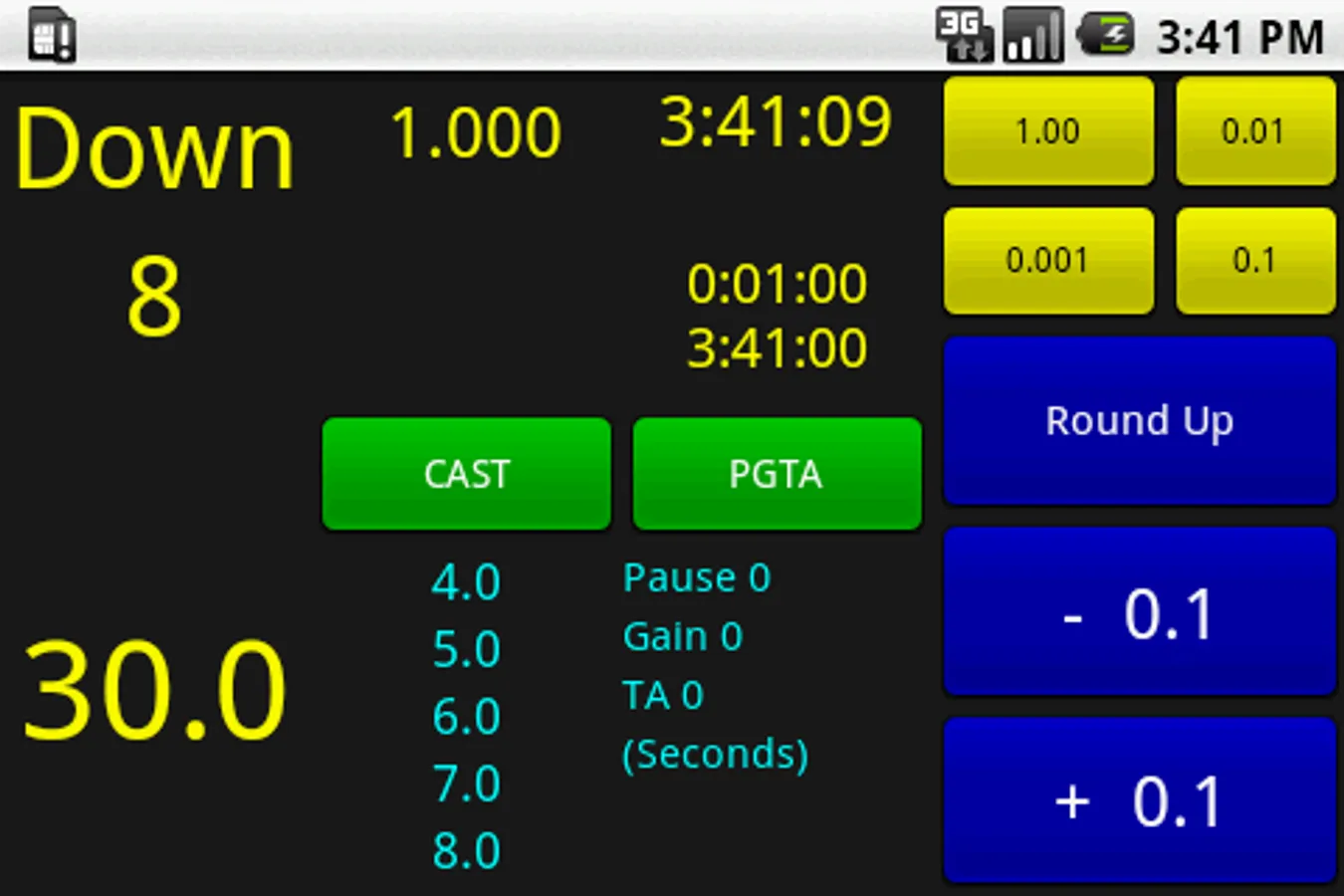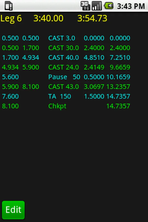 (This version of Richta provides several important functions over the Richta-Lite version. It supports, at the user's option, display of calculation results in 0.01 minute increments as well as seconds. It also maintains a database of all legs run and provides the ability to look back, review and edit the calculations for any completed legs. This later feature can be particularly helpful at the end of the event when the team is reviewing their performance on the rally).