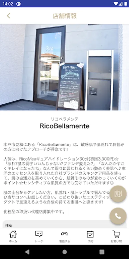 The map of the store is displayed and it is linked with the map app, so you can easily find it even when you visit the store for the first time.