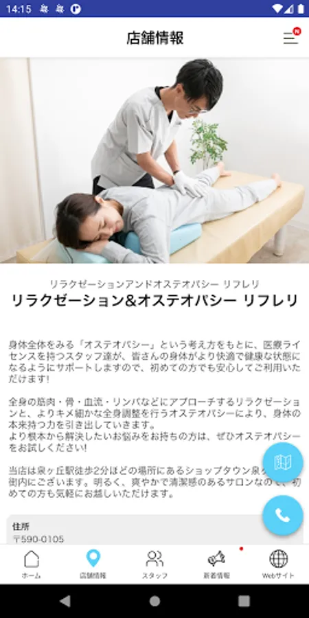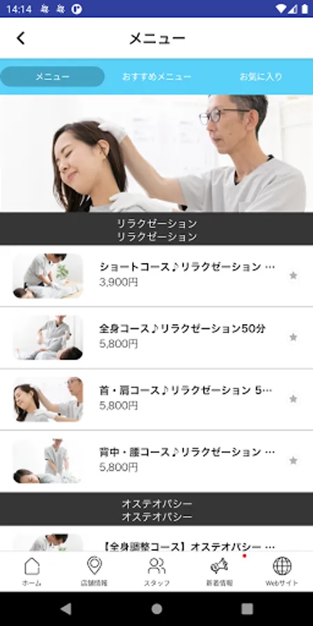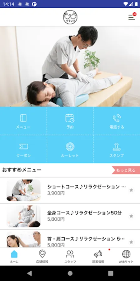 Relaxation & Osteopathy Refreli's official app is now available. Through the app, you can receive new information and deals on "Relaxation & Osteopathy Refreli" in real time. You can also check and make reservations for menus and desired time zones from your smartphone at any time. By installing the app, you can use "Relaxation & Osteopathy Refreli" more conveniently and easily.