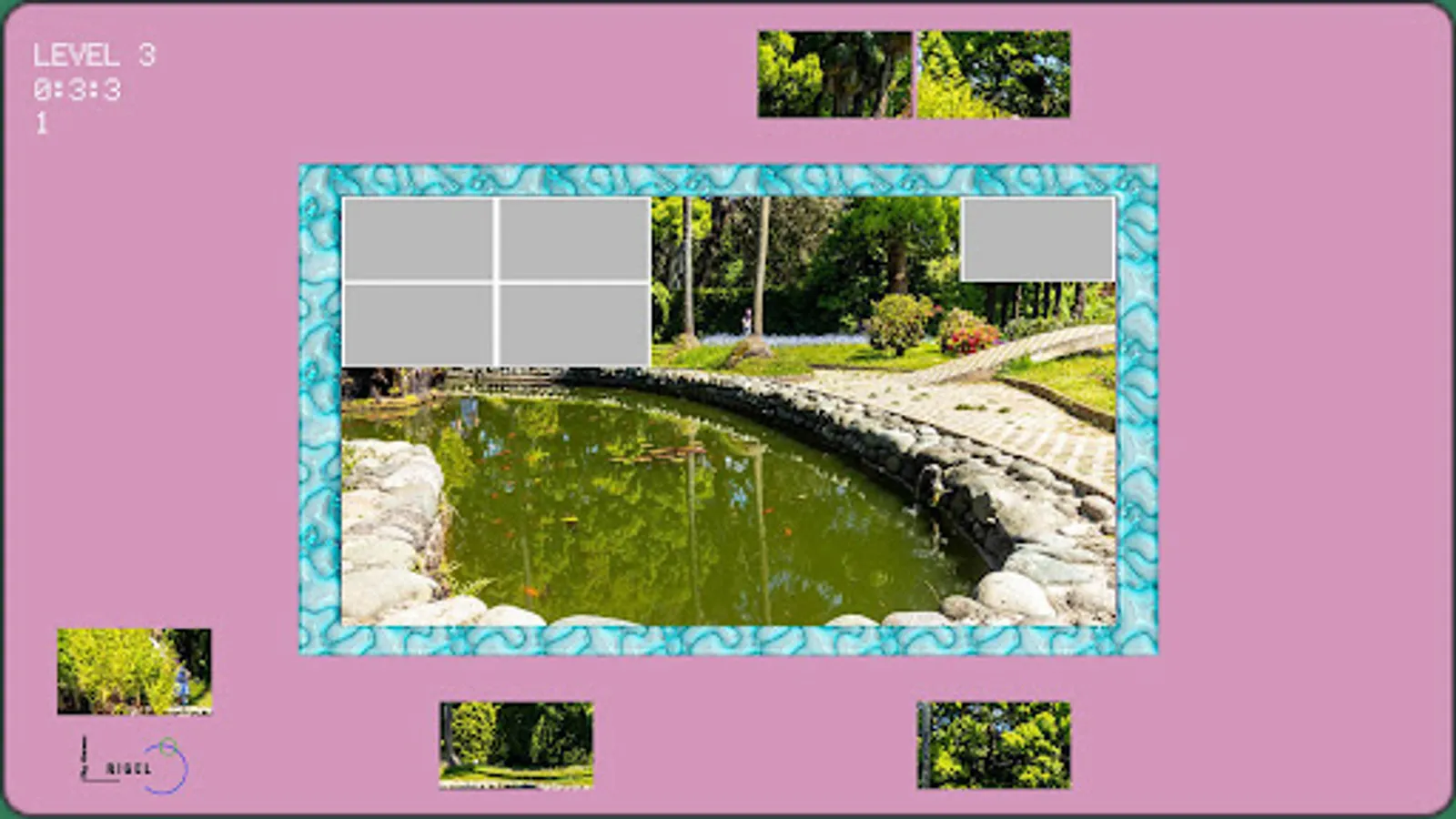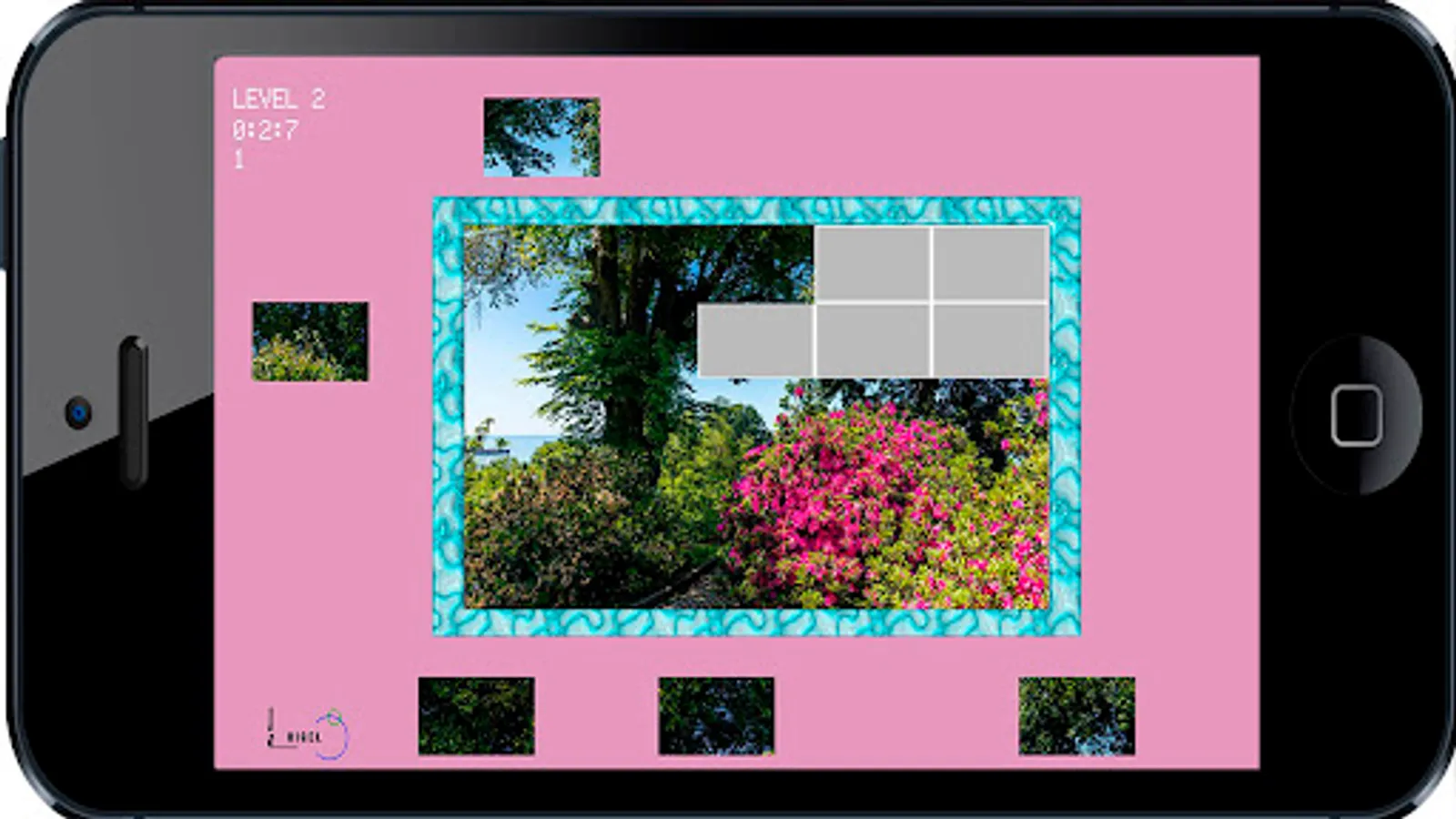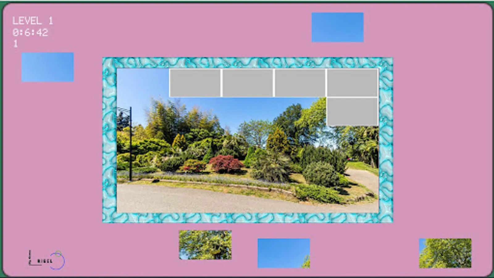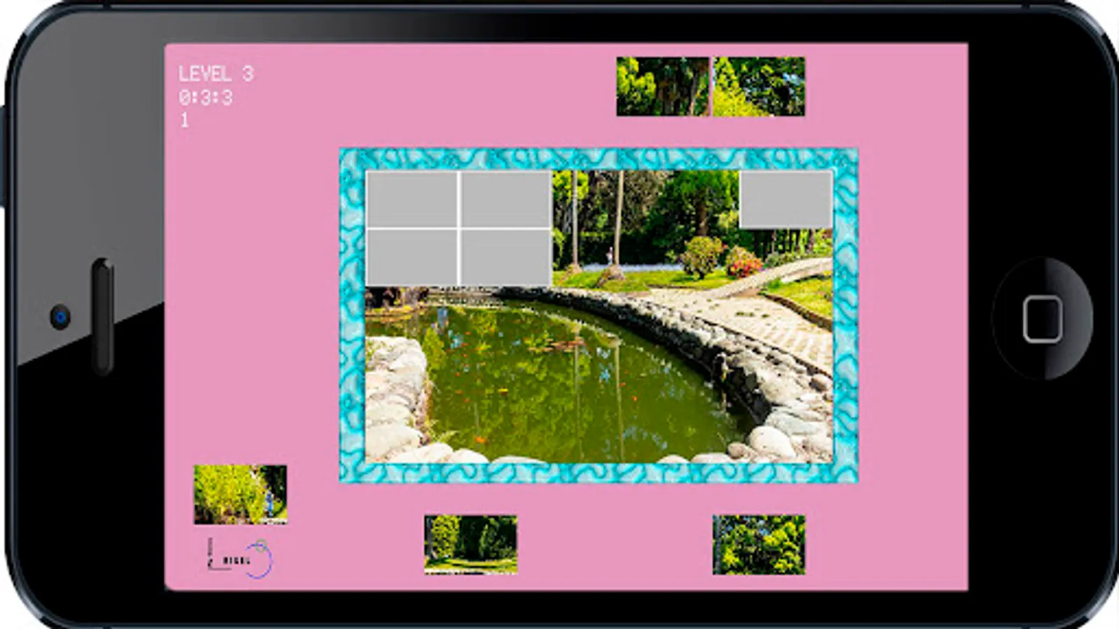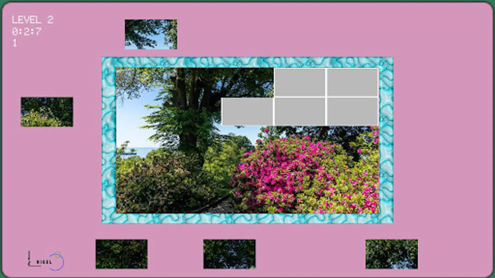 The easel is divided into cells by a grid. Along the edges of the easel are fragments of a photograph of the Batumi Botanical Garden. It is necessary to add these fragments along the grid so that a whole photograph is assembled. The game has 13 levels.