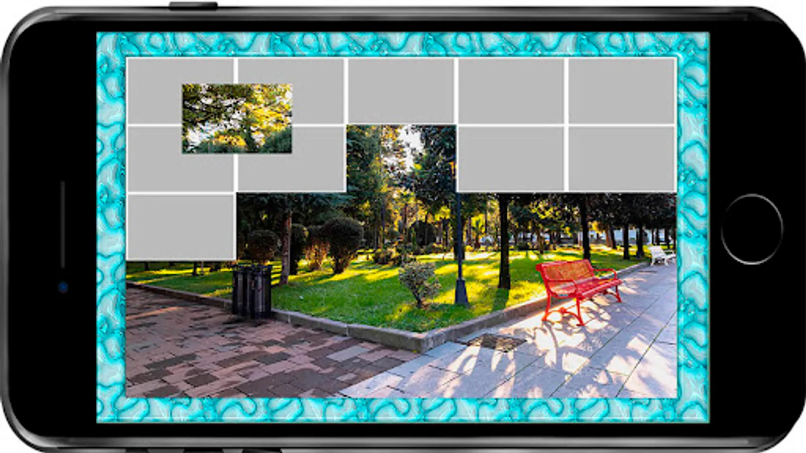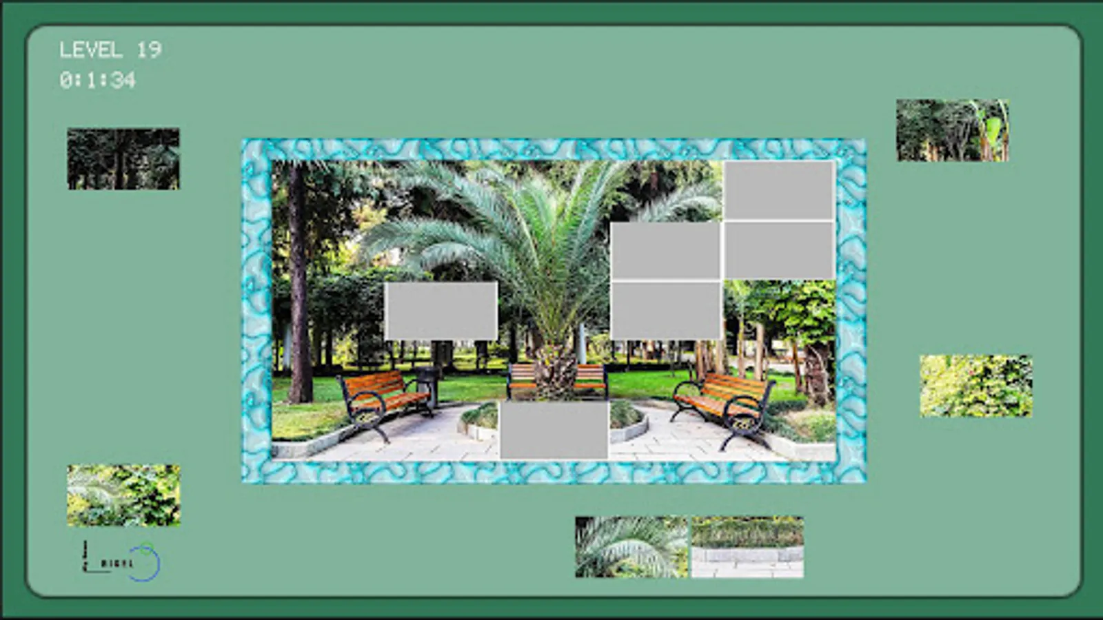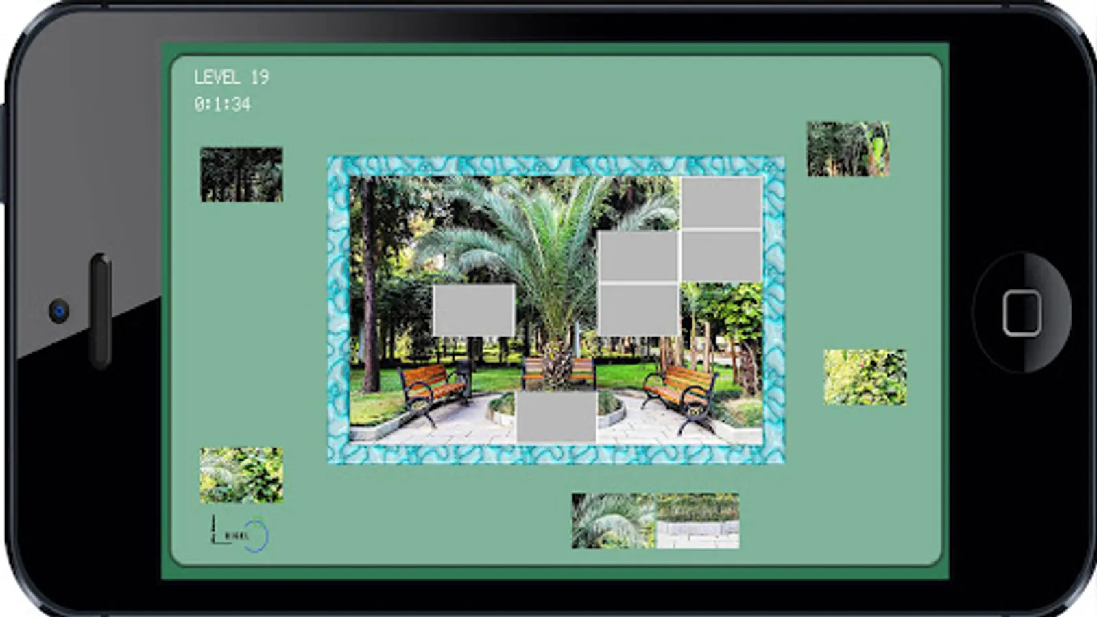 Мольберт разбит сеткой на ячейки. По краям мольберта расположены фрагменты фотографии батумского бульвара. Нужно сложить эти фрагменты по сетке, чтобы собралась цельная фотография. В игре 20 уровней.