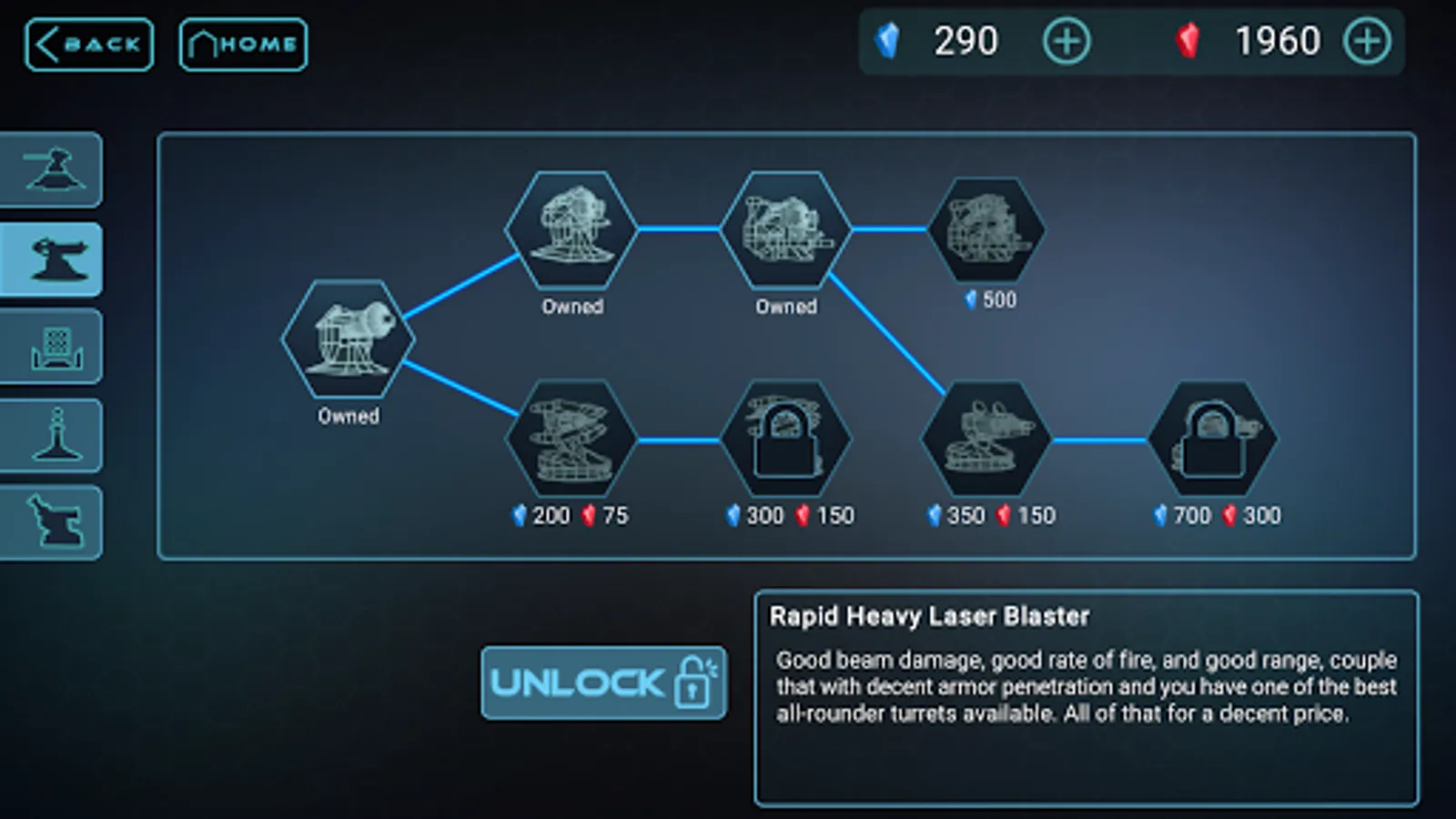 ★ 5 basic turret types that with upgrades, totals to 27 unique turrets.