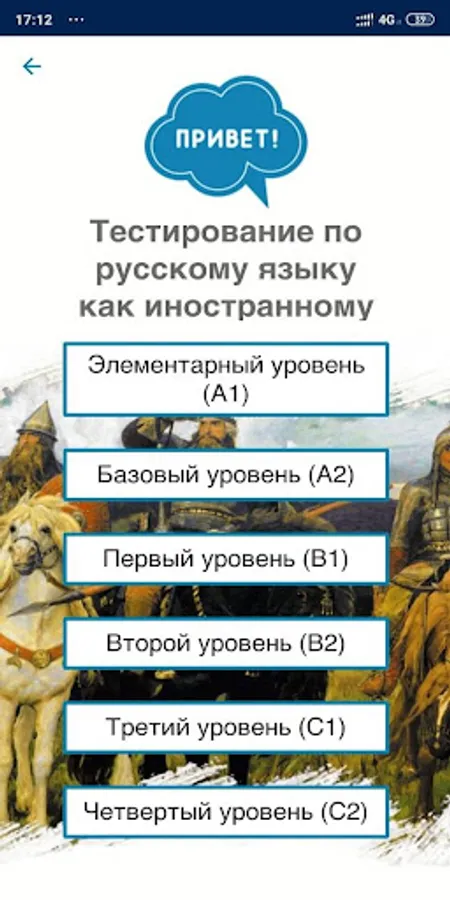 In the application, you can choose a test depending on your level of Russian language proficiency. If you are not sure what level you currently have, then start with the simplest tests (A1) and move on to find the tasks that are most suitable for you in complexity.