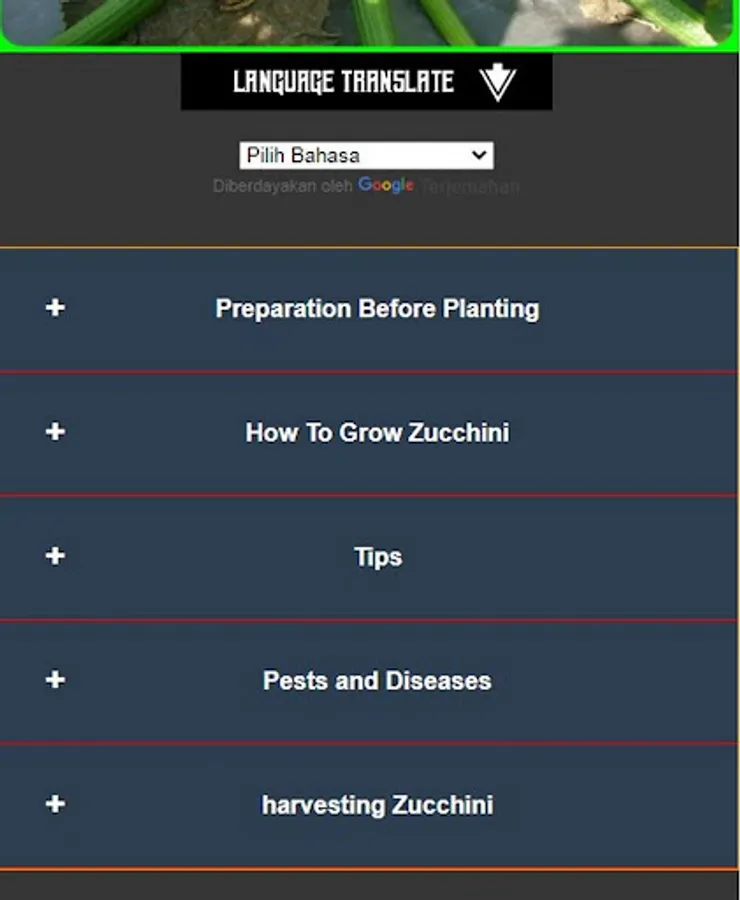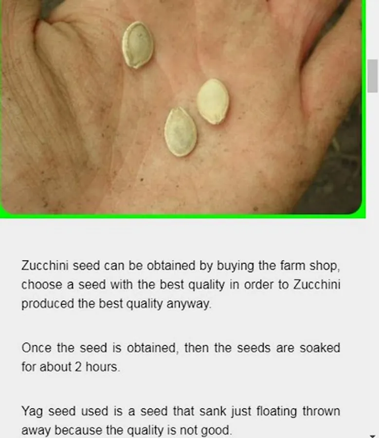 This application shows how the correct zucchini fruit cultivation, there are tips that will be very useful for farmers zucchini. This application also will explain the types of pests and diseases and how to overcome them.