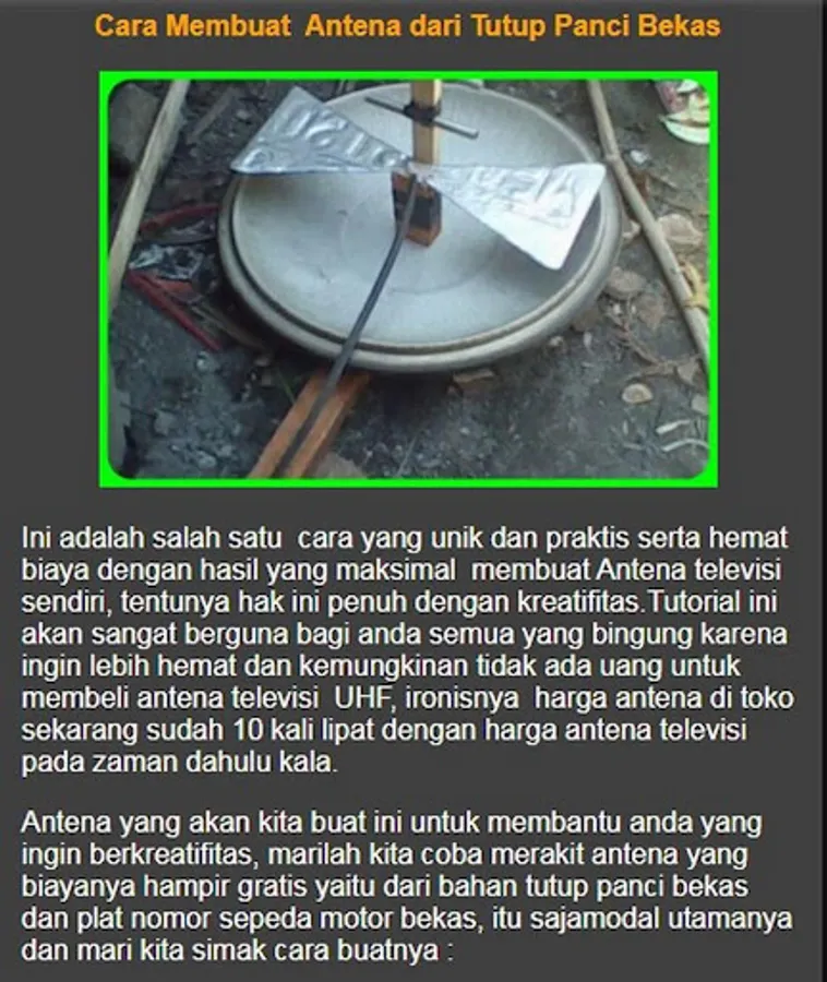 "In the electronics world, creative ideas will always appear like this one. You can create your own TV antenna with a fairly low cost, affordable yet quality is quite good and the results were outstanding.