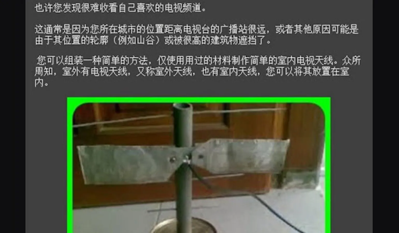 This application shows you how to make your home a simple TV antenna, with a material that is cheap and easily obtained.